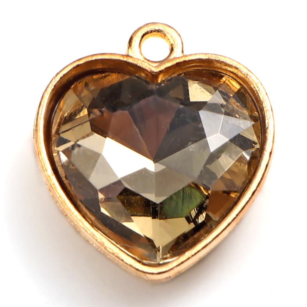 Подвеска Сердце граненое шампанское стекло 0011116 золотой цвет 19x16х6 мм