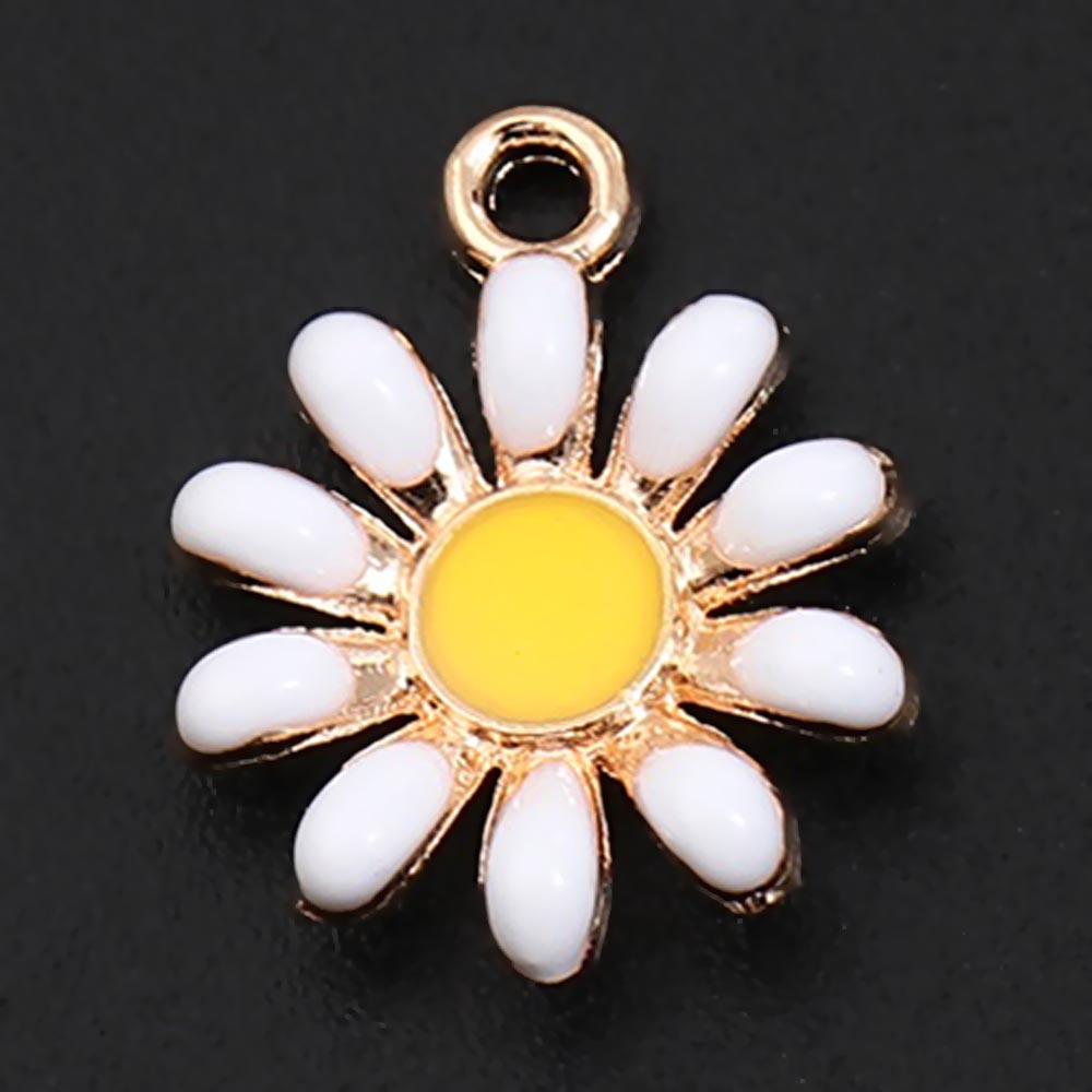 Подвеска Ромашка с белой и желтой эмалью 0011117 золотой цвет 16x13х4 мм