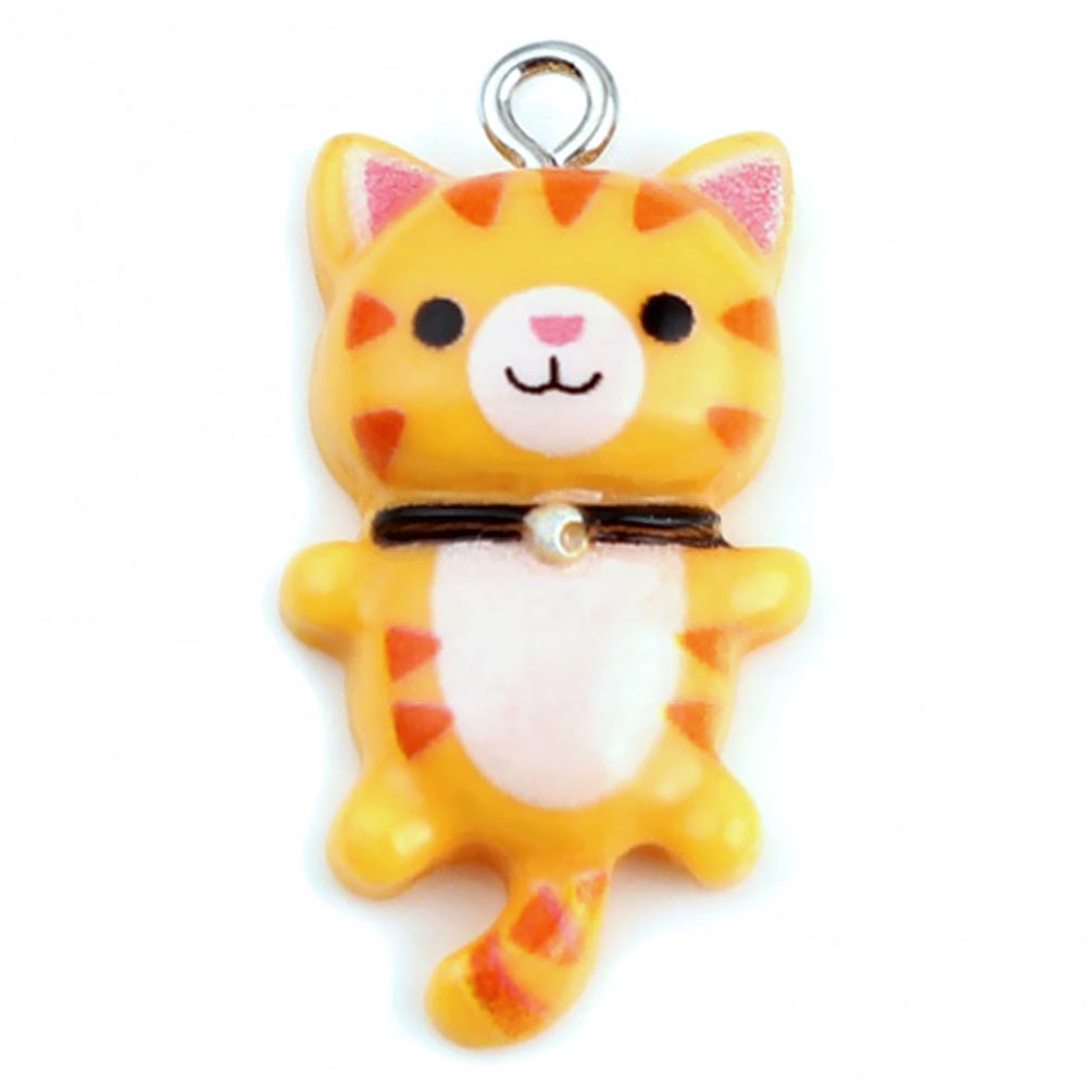 Подвеска-Кулон из смолы Котик желтый 0011143 петля серебряного цвета 29x15х7 мм