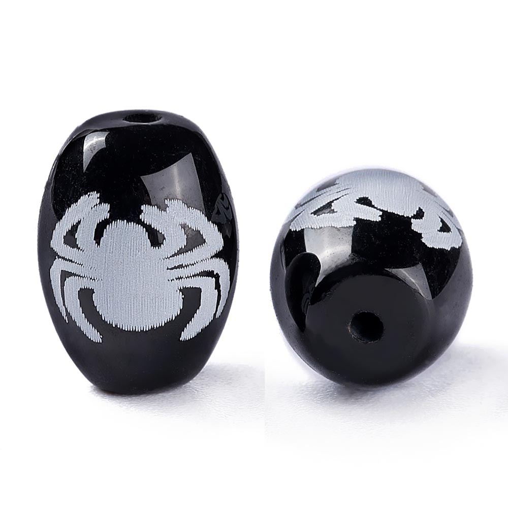 Бусина Дзи натуральный камень Агат черный с белым Паук 0011227 цилиндр 14x10 мм