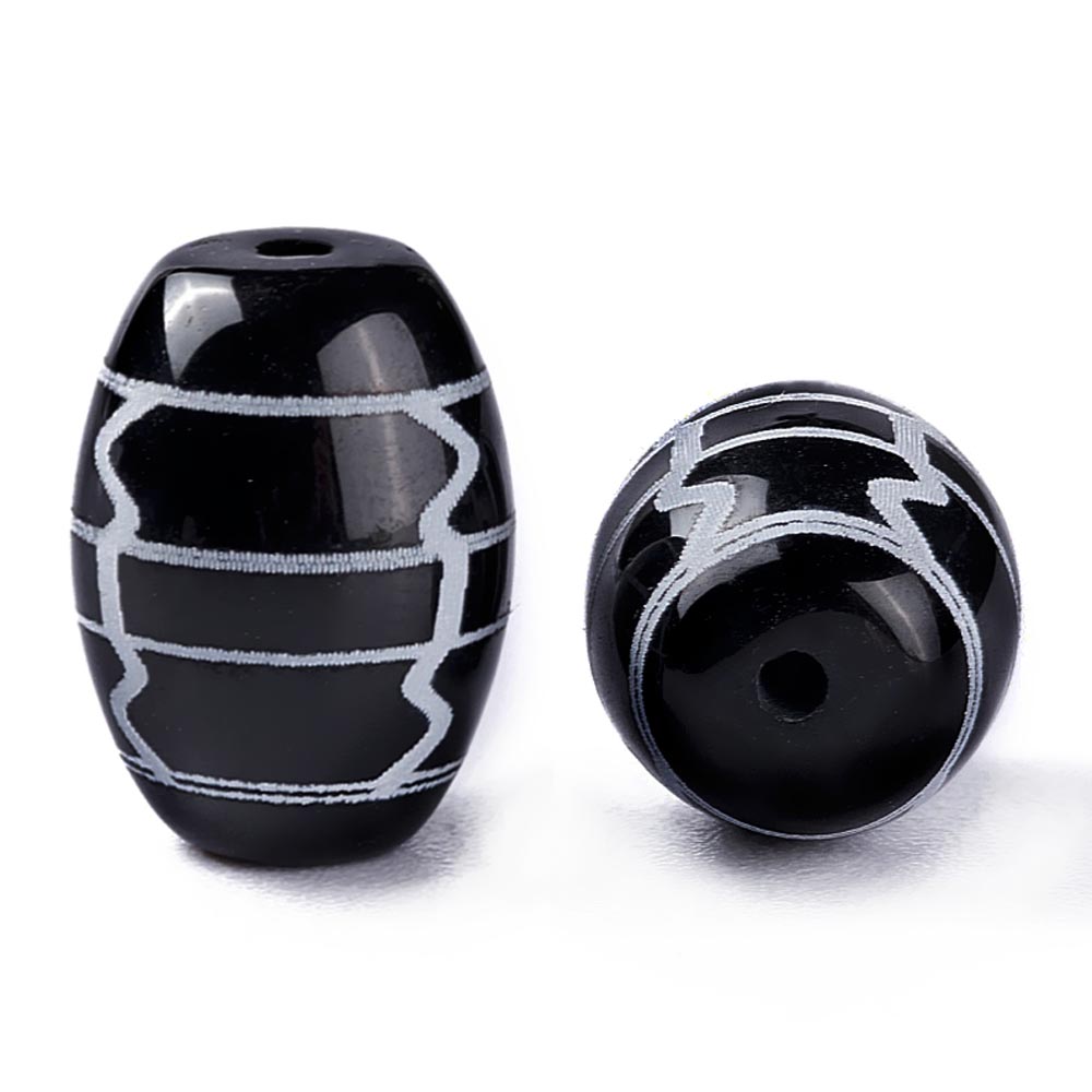 Бусина Дзи натуральный камень Агат черный с белым Ваджра 0011230 цилиндр 14x10 мм