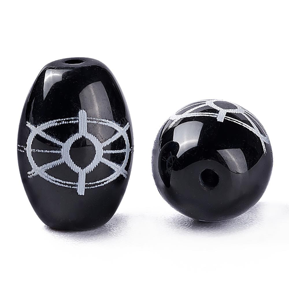 Бусина Дзи натуральный камень Агат черный с белым Колесо Фортуны (Штурвал) 0011232 цилиндр 14x10 мм