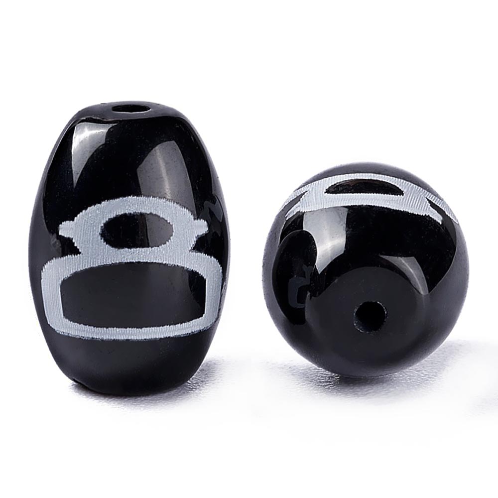 Бусина Дзи натуральный камень Агат черный с белым Бог богатства 0011234 цилиндр 14x10 мм