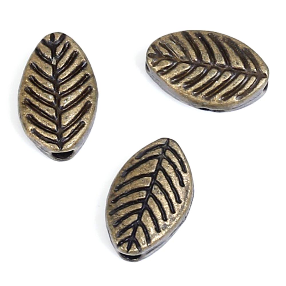 Металлическая бусина Листик 0011251 бронзовый цвет 9x6x3 мм