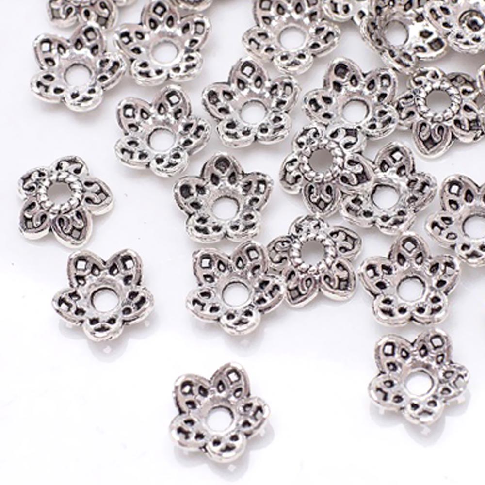 Крепежная шапочка литая Цветок пятилистный 0003173 серебряный цвет 8x2 мм