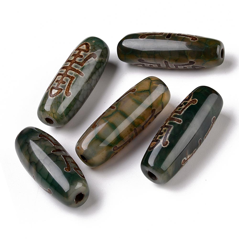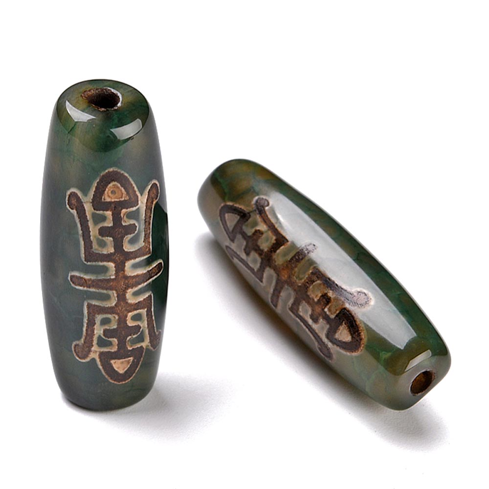 Бусина Дзи натуральный камень Агат серо-зеленый экзотика Счастье и Паук 0010879 цилиндр 30x12 мм
