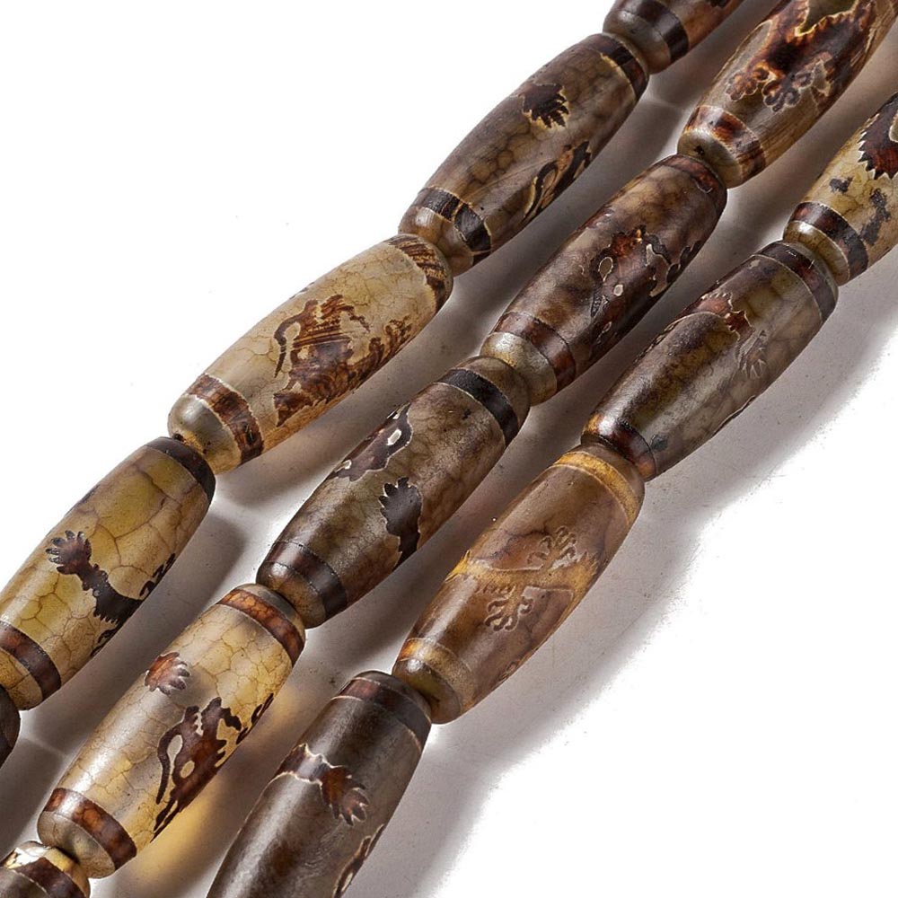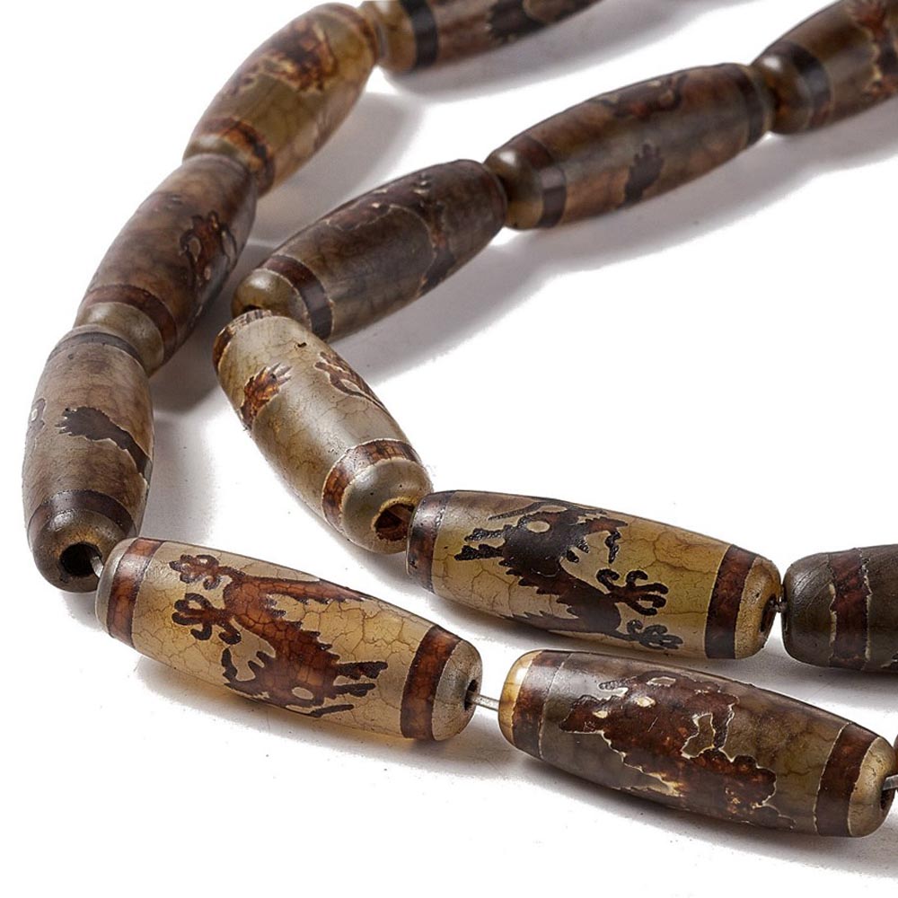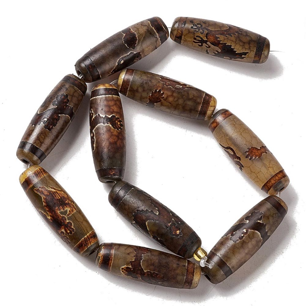Бусина Дзи натуральный камень Агат коричневый с бежевым Элит Дракон 0011290 цилиндр 30x12 мм
