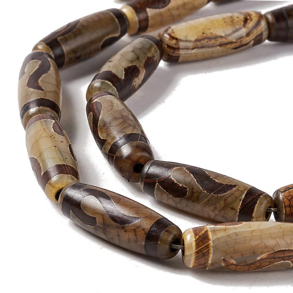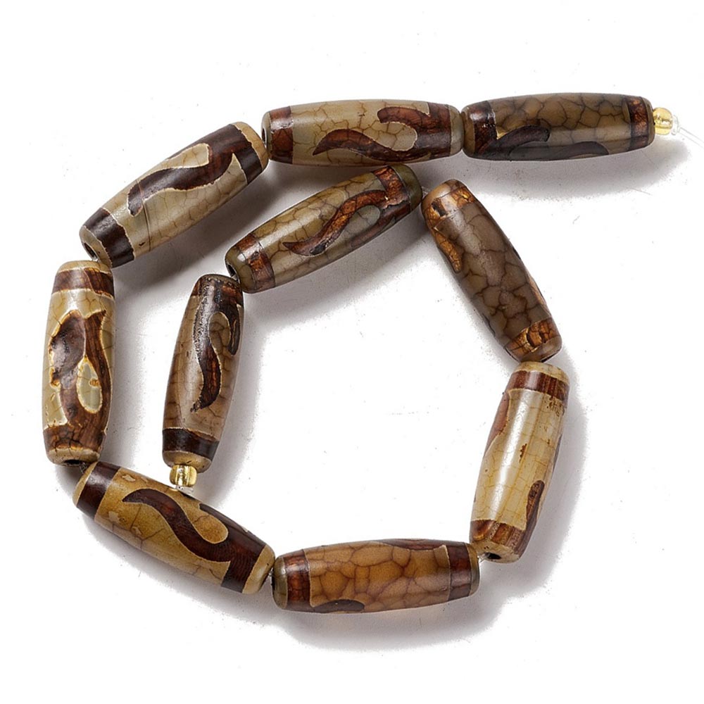 Бусина Дзи натуральный камень Агат коричневый с бежевым Элит Руи 0011292 цилиндр 30x12 мм