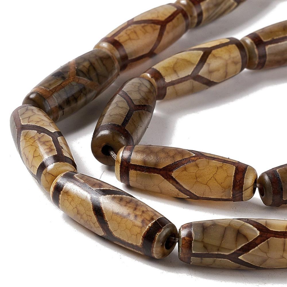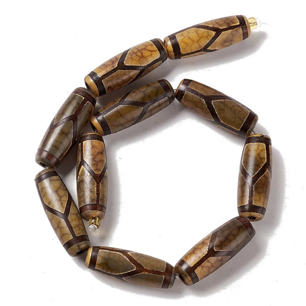 Бусина Дзи натуральный камень Агат коричневый с бежевым Элит Черепаха 0011296 цилиндр 30x12 мм