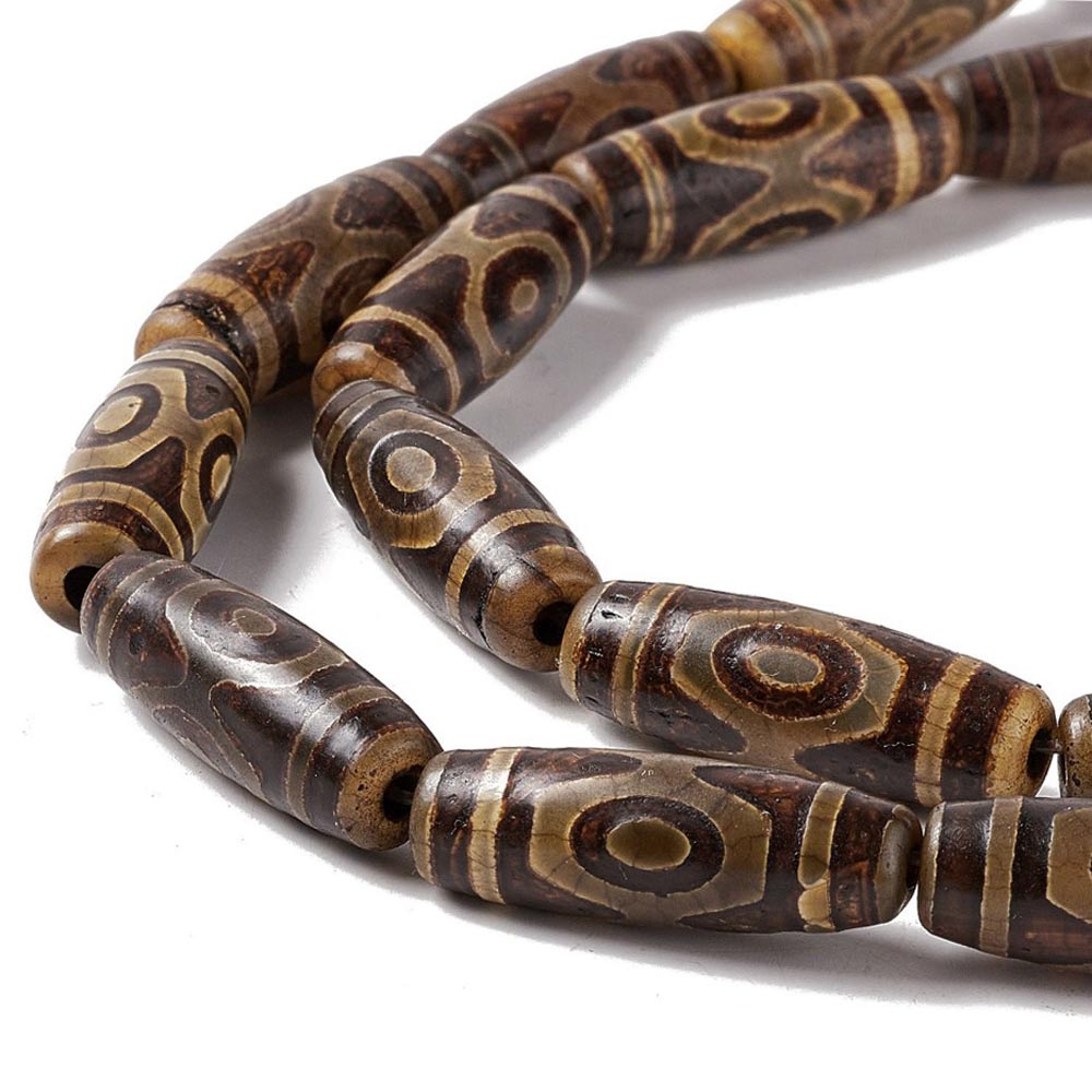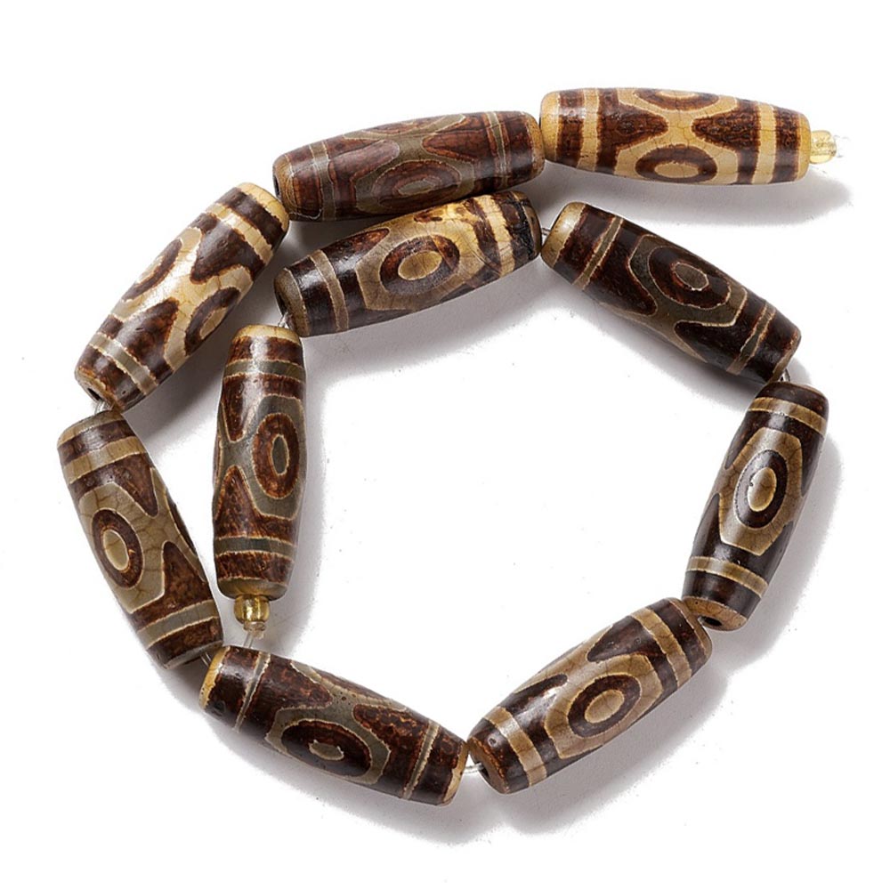Бусина Дзи натуральный камень Агат коричневый с белым 3-глазая 0010826 цилиндр 30x12 мм