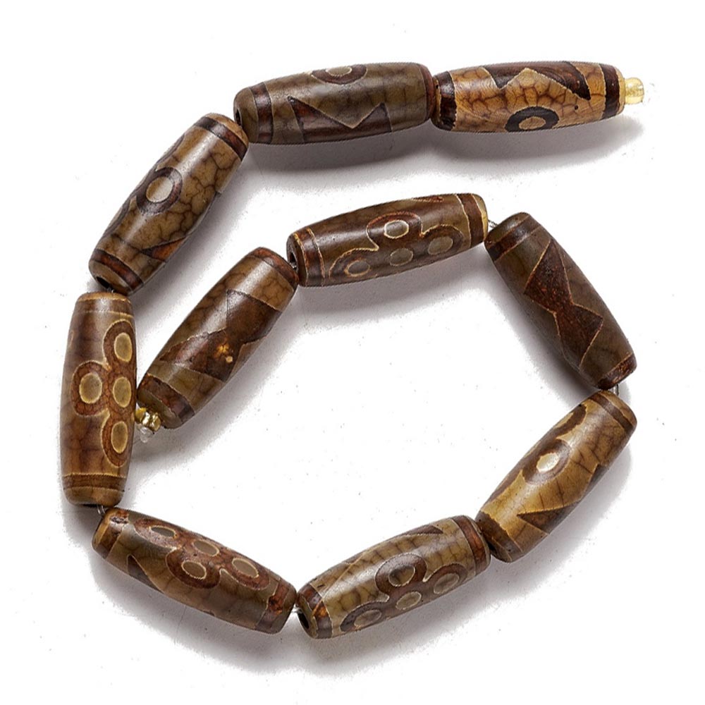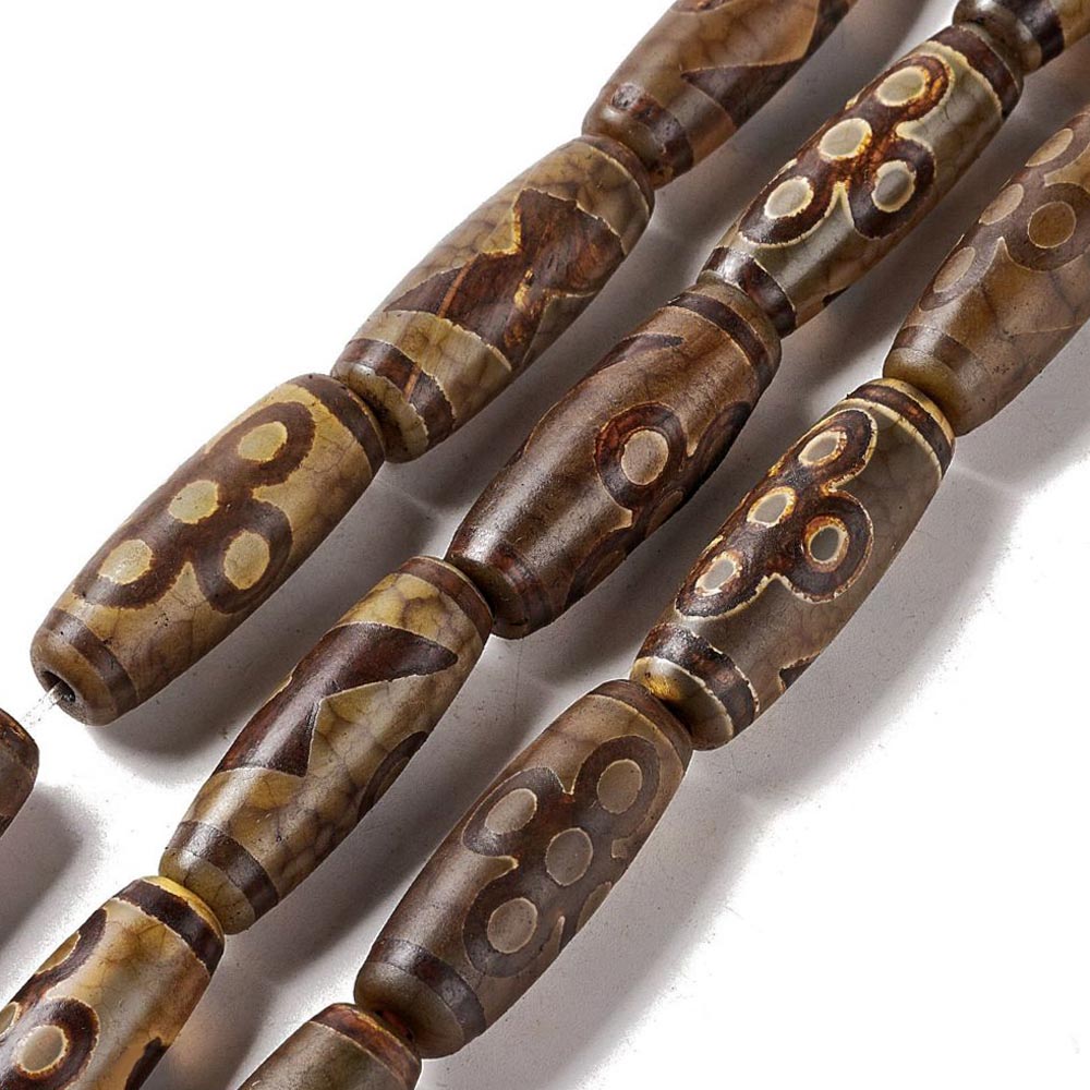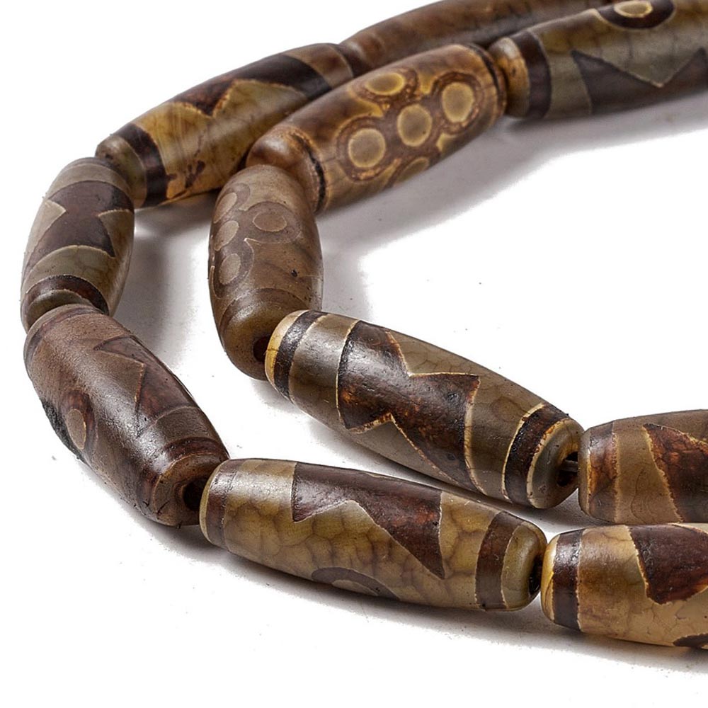 Бусина Дзи натуральный камень Агат коричневый с белым Гаруда 0010532 цилиндр 30x12 мм