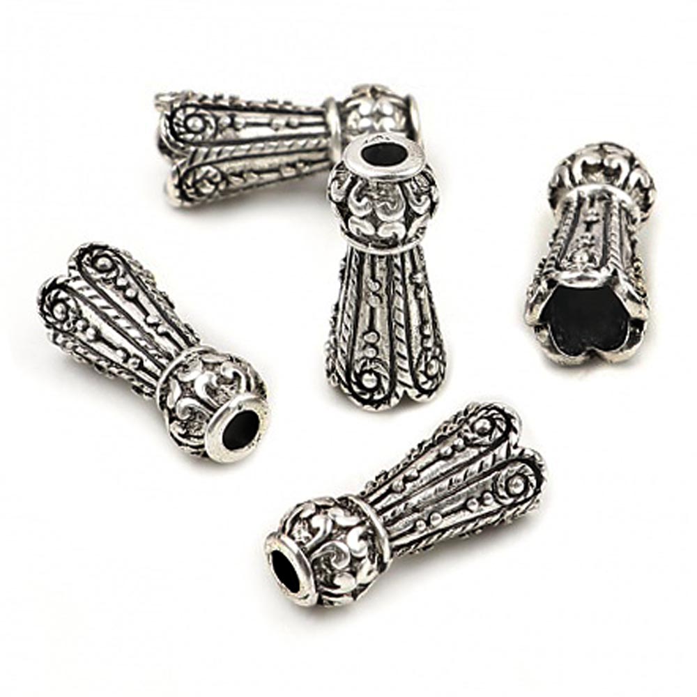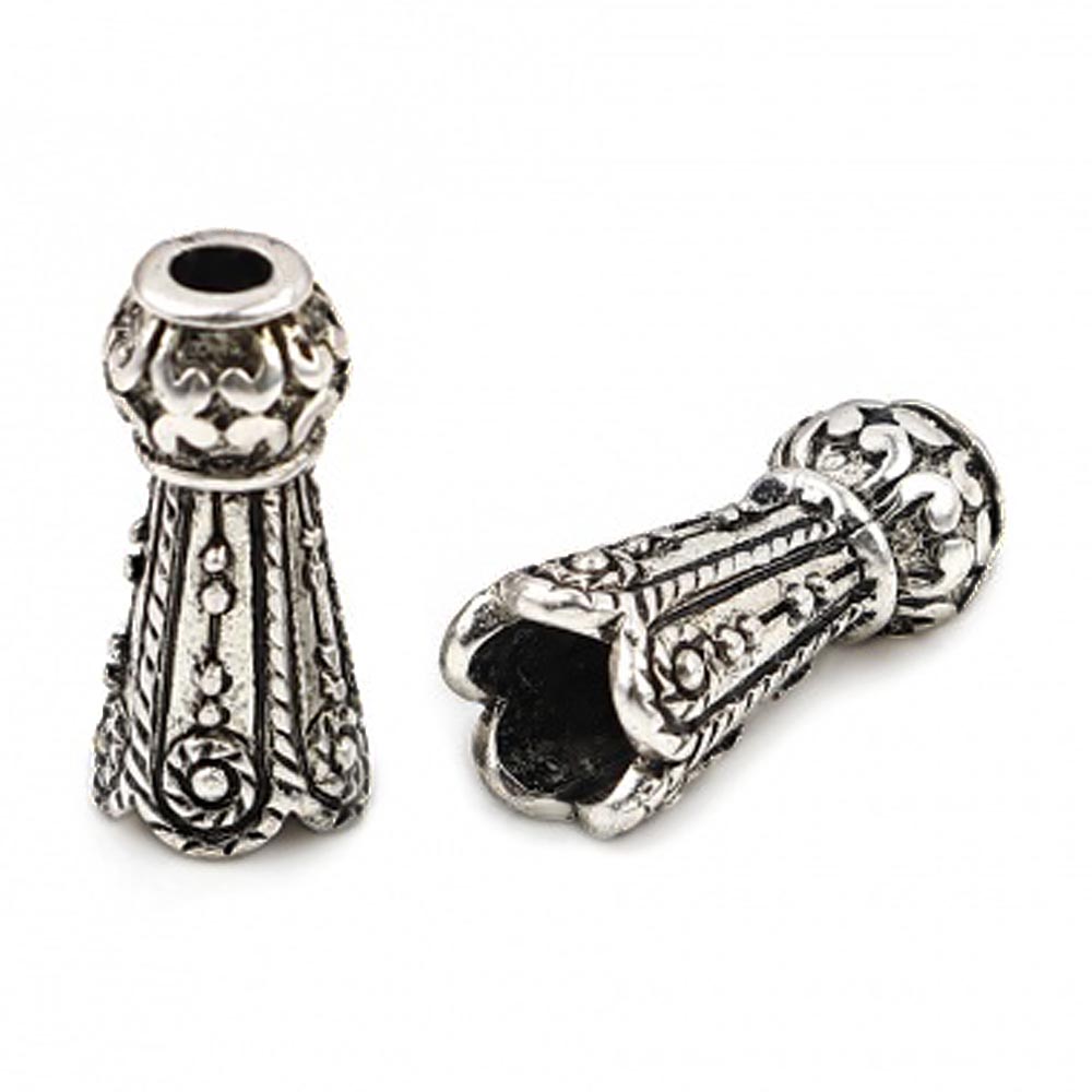 Крепежная шапочка литая металлическая Колокольчик с бусиной 0012111 серебряный цвет 17x7 мм