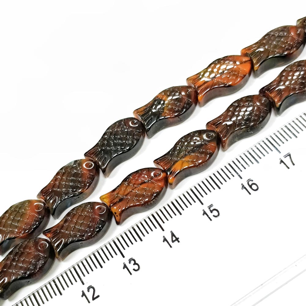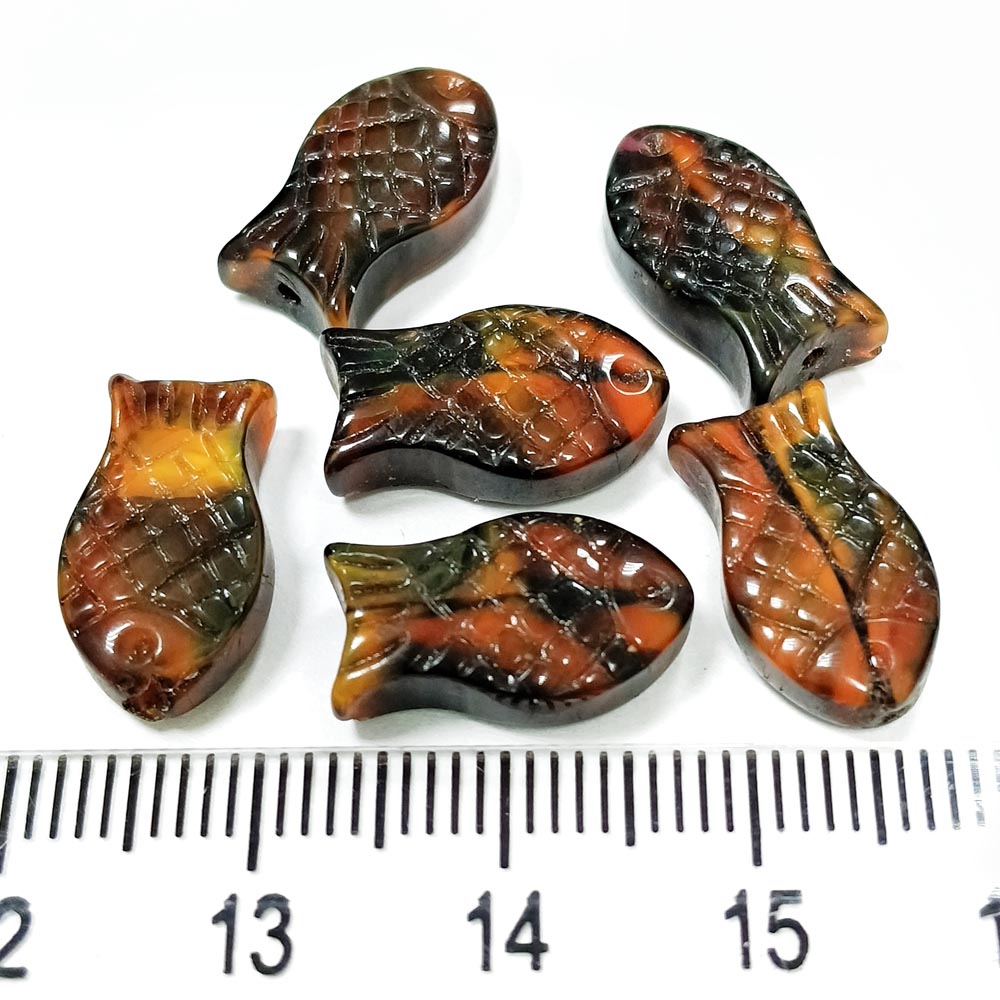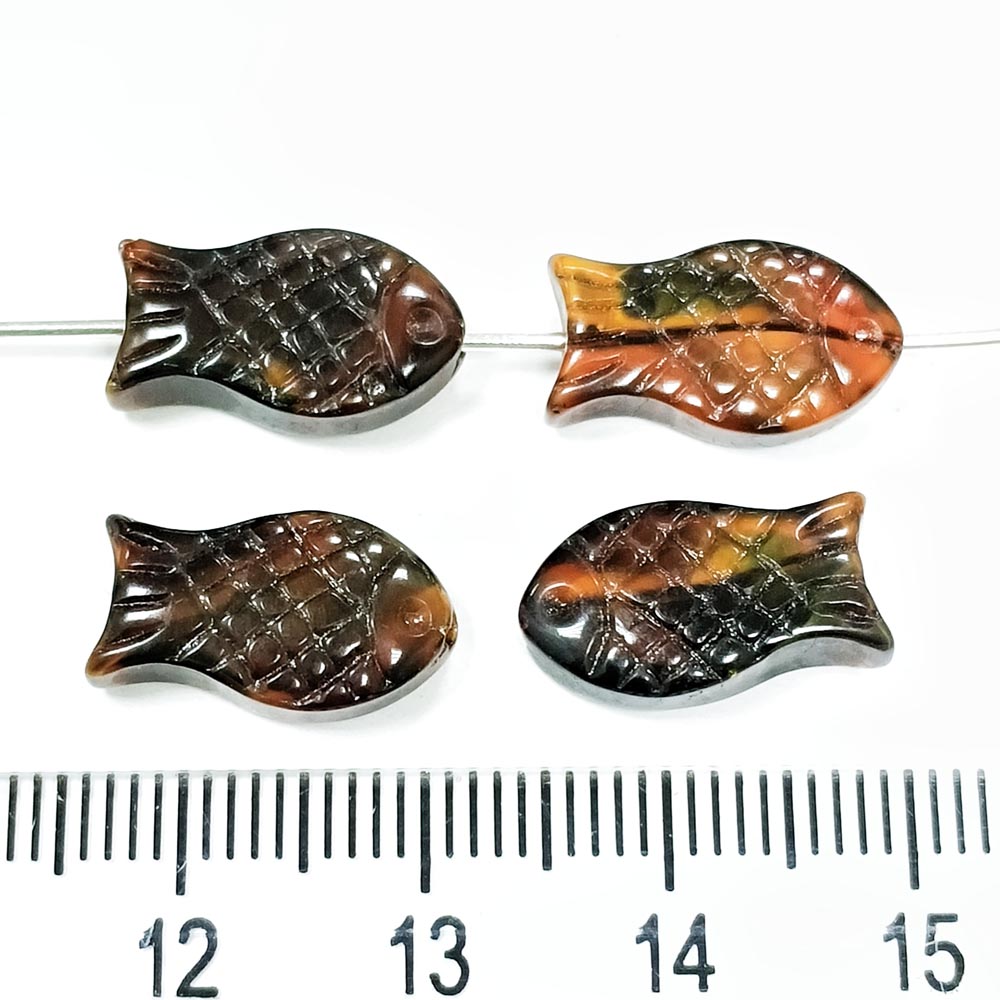 Стеклянная бусина Рыбка 0012232 коричневый цвет с оранжевыми прожилками 15x9х5 мм