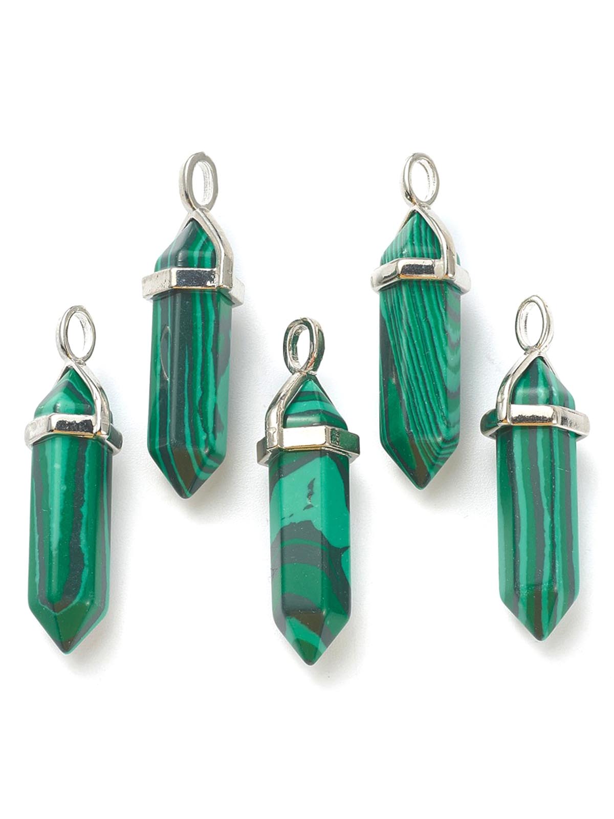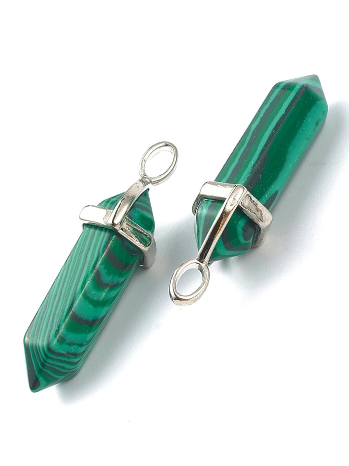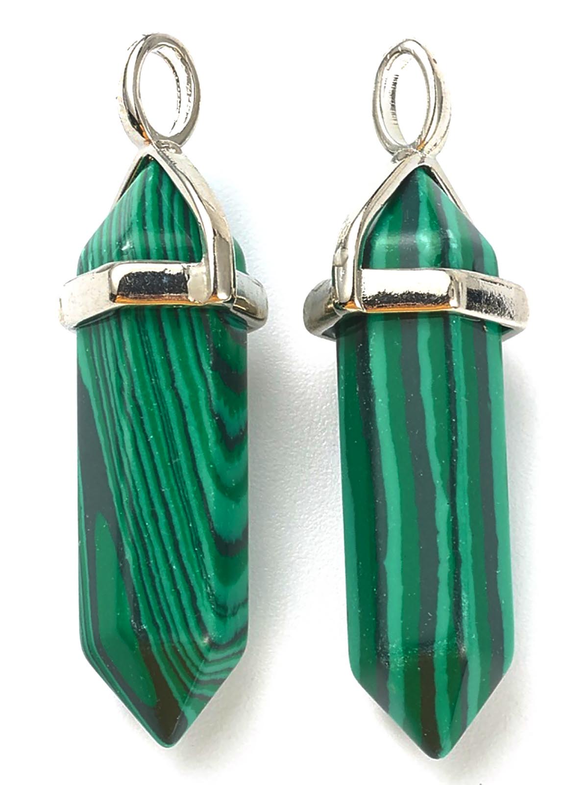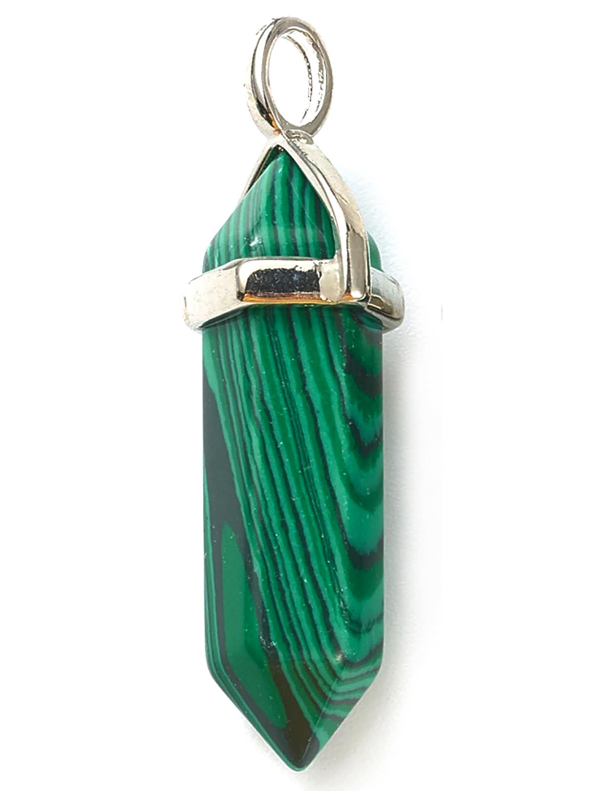 Кулон натуральный камень Малахит Маятник 0012292 с петлей и держателем серебряного цвета 40х12х11 мм