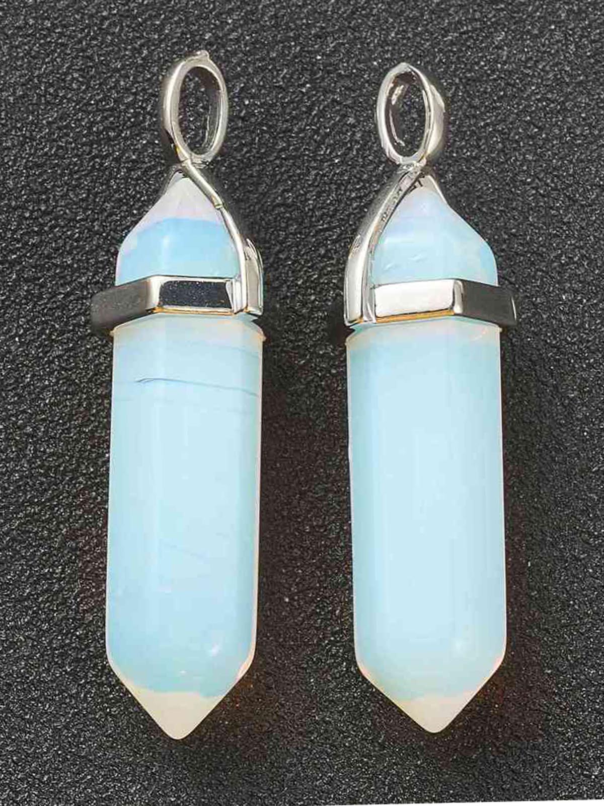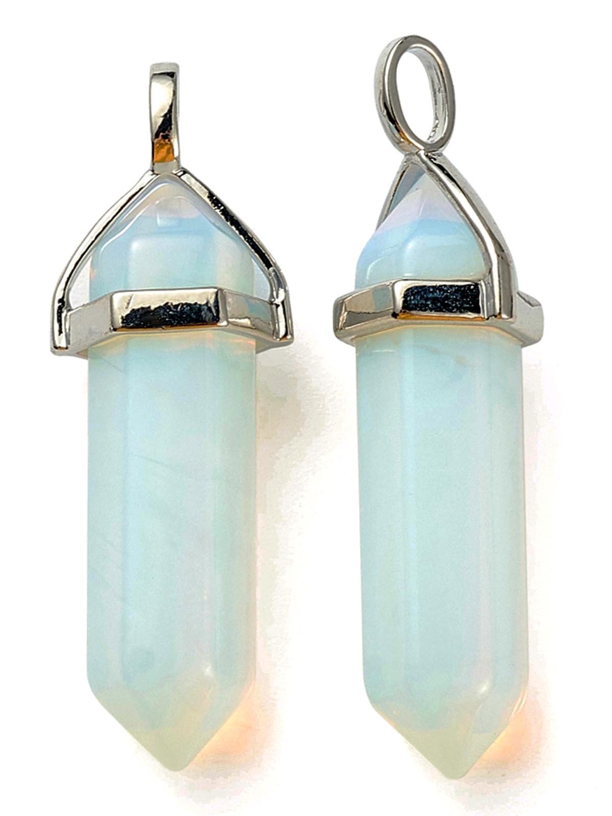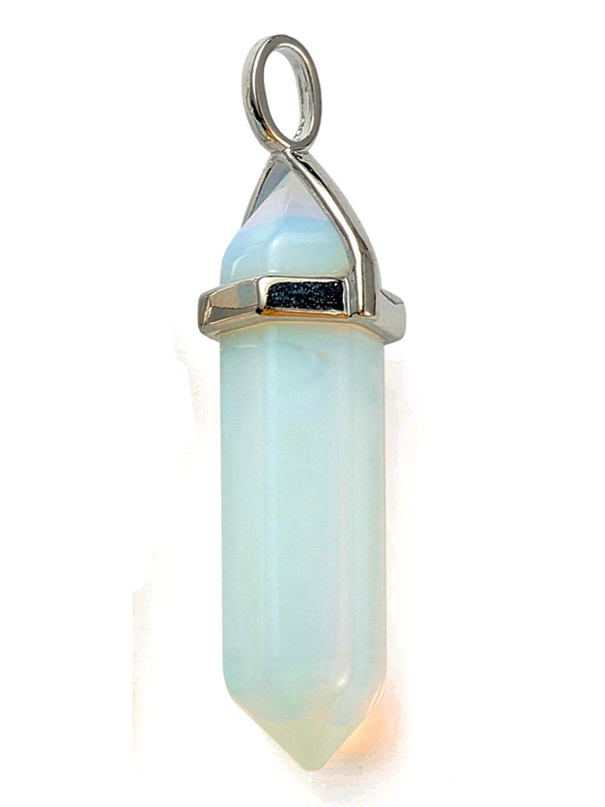 Кулон натуральный камень Лунный камень Маятник 0012293 с петлей и держателем серебряного цвета 40х12х11 мм