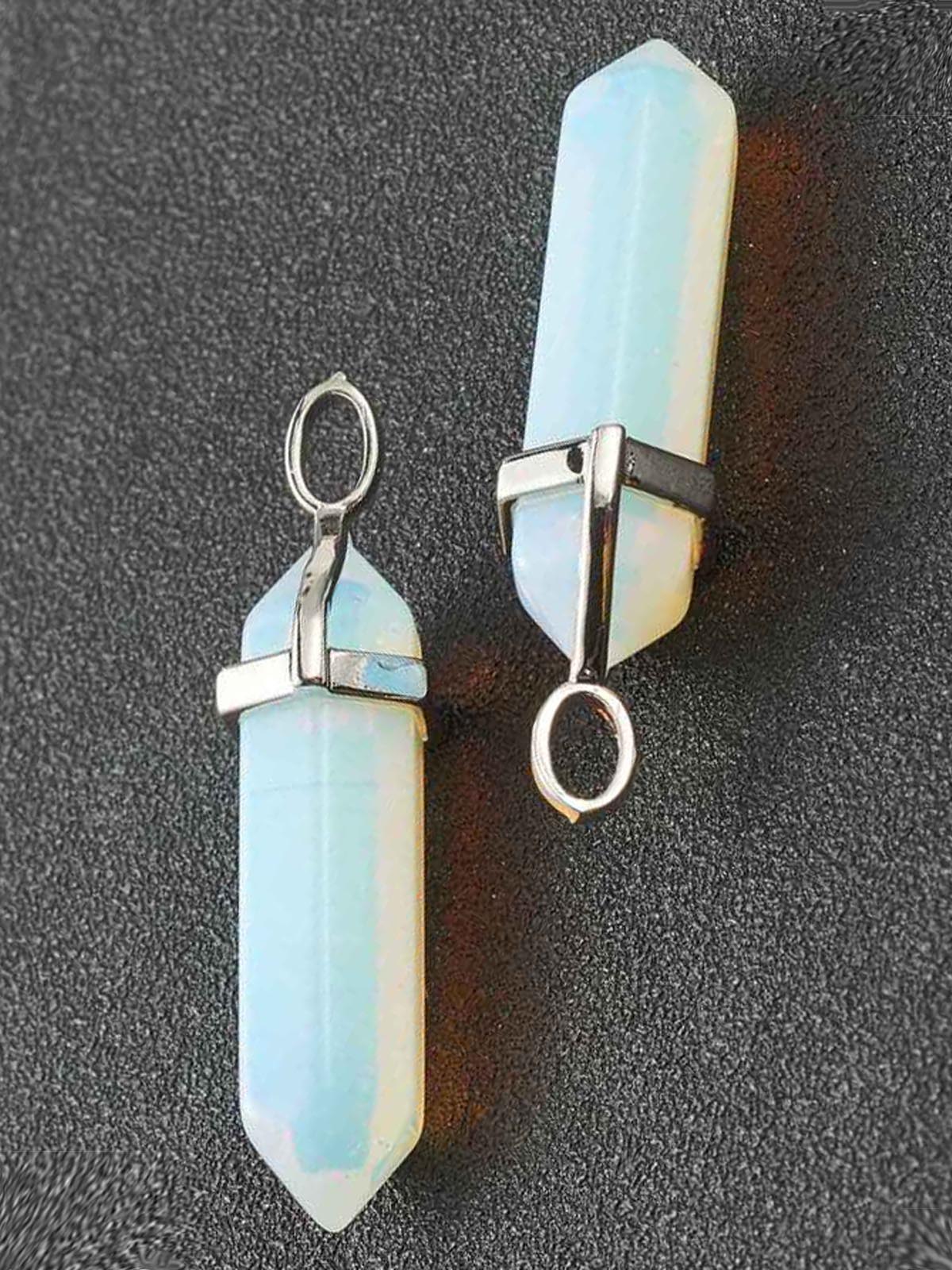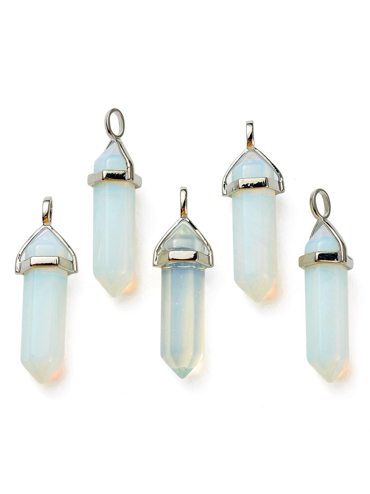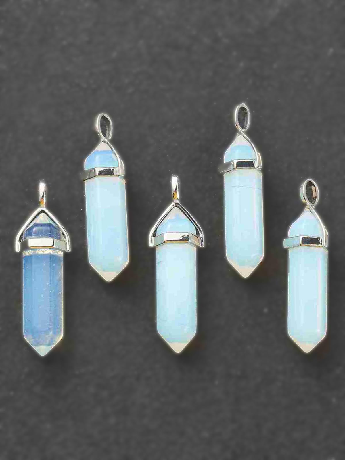 Кулон натуральный камень Лунный камень Маятник 0012293 с петлей и держателем серебряного цвета 40х12х11 мм