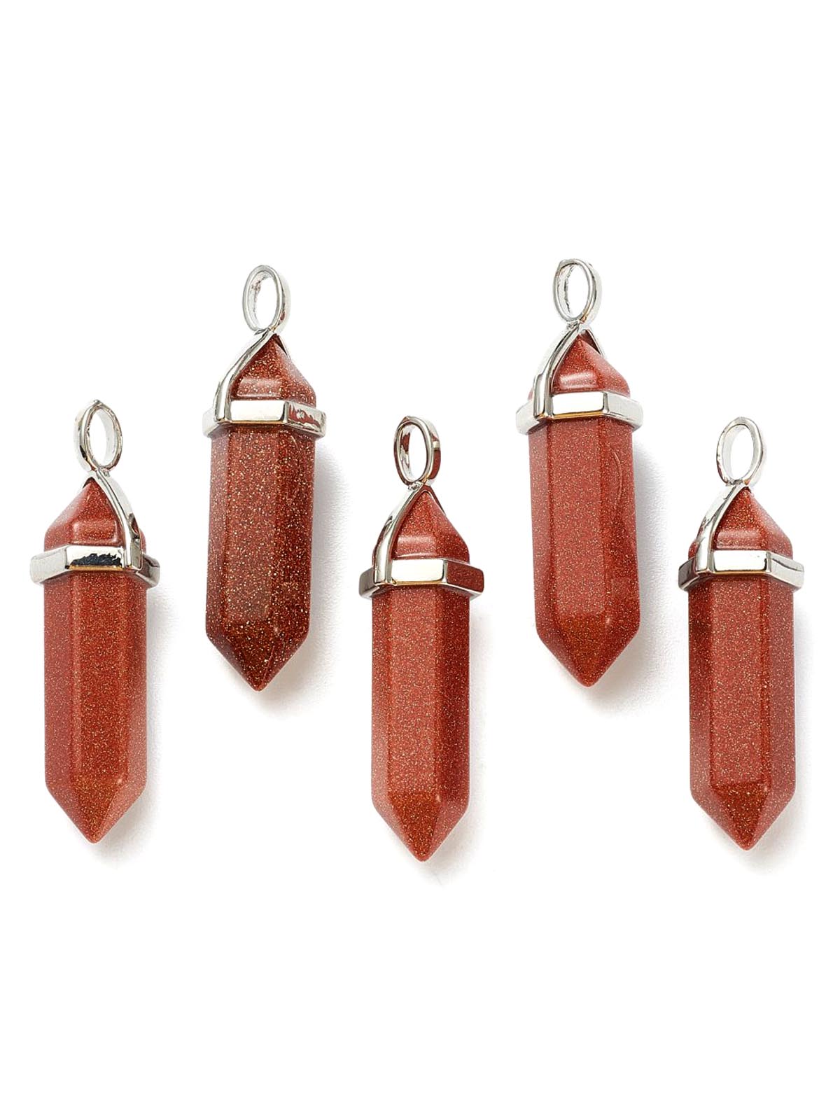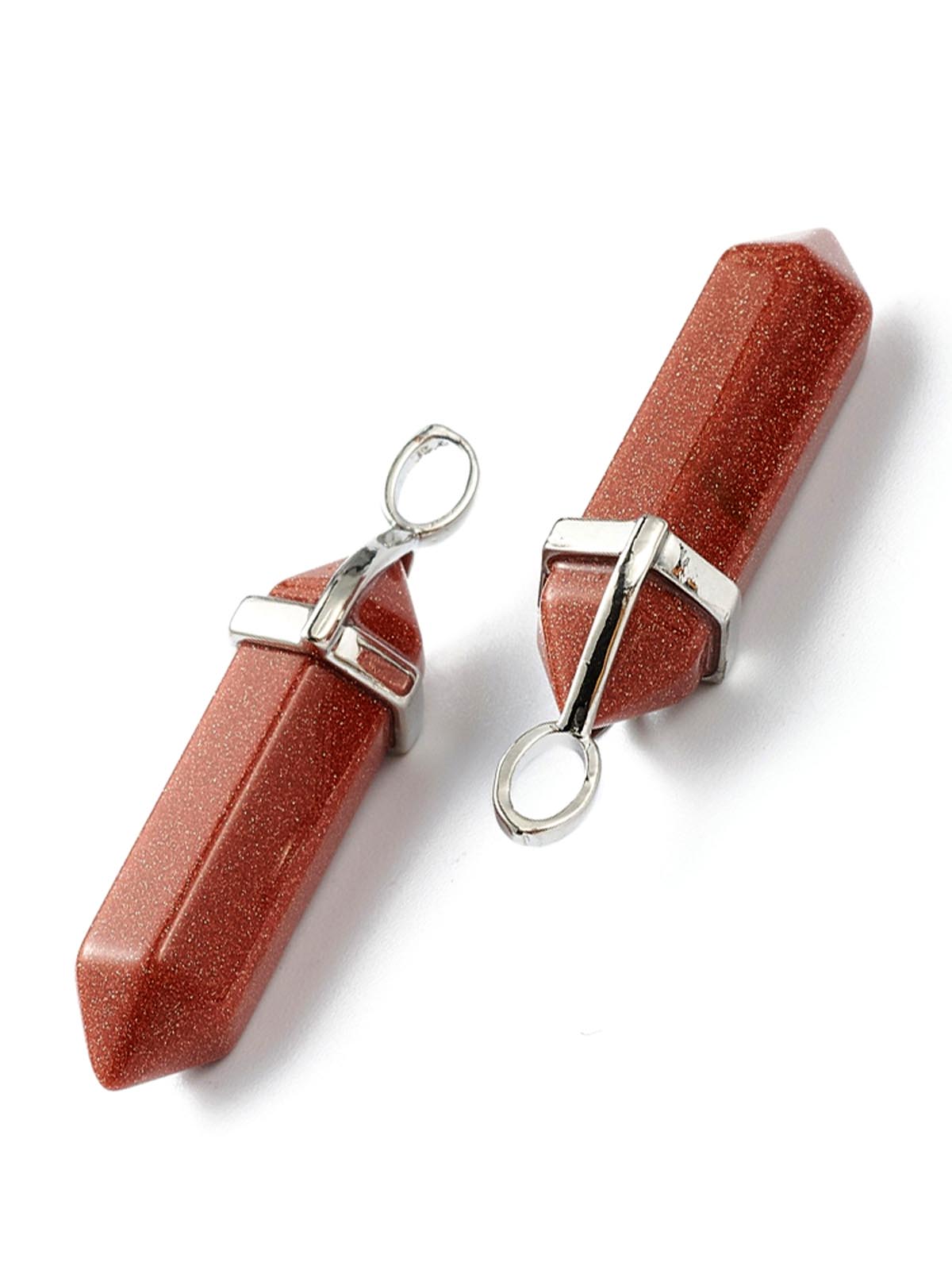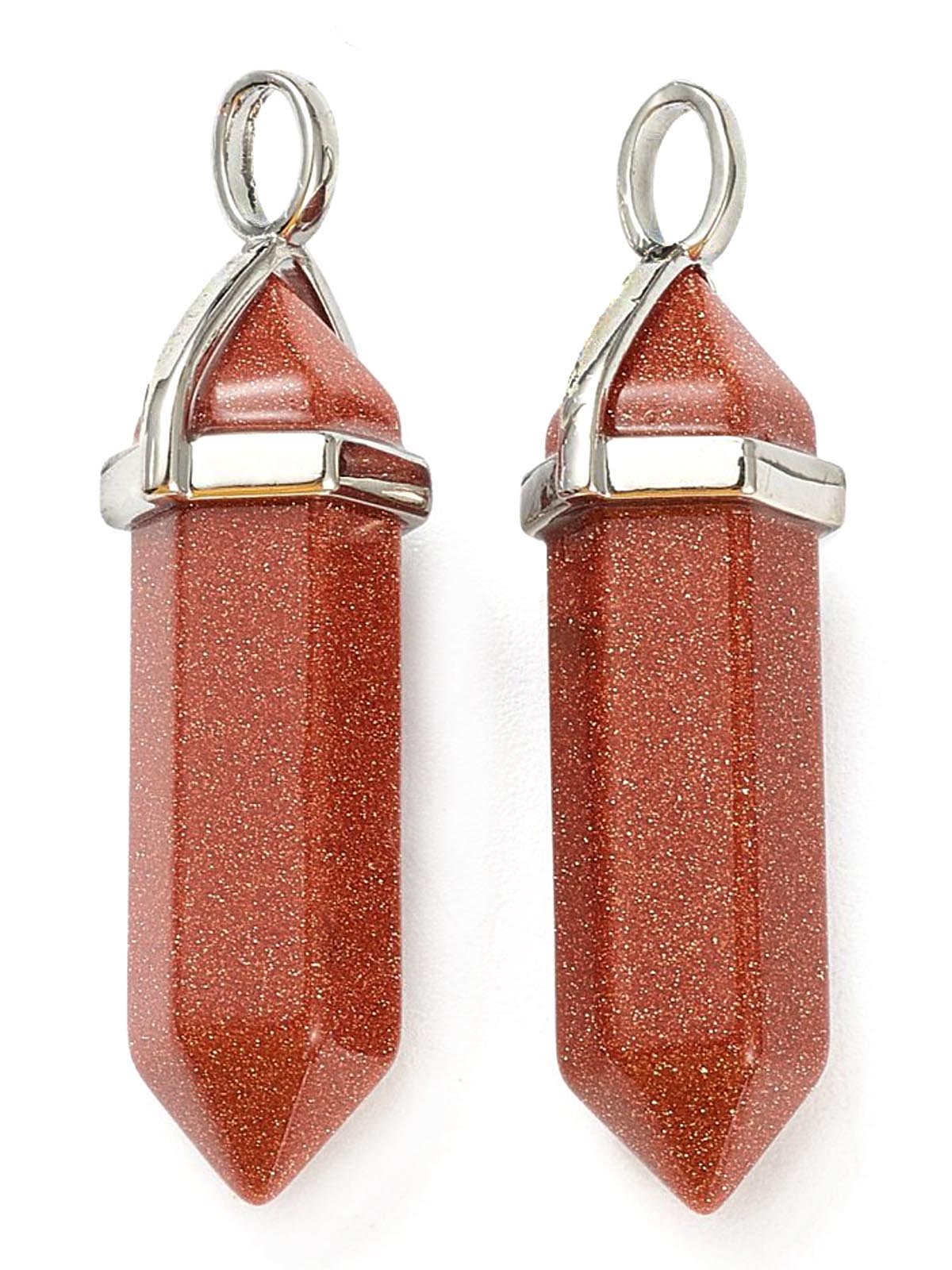 Кулон натуральный камень Авантюрин коричневый Маятник 0012295 с петлей и держателем серебряного цвета 40х12х11 мм