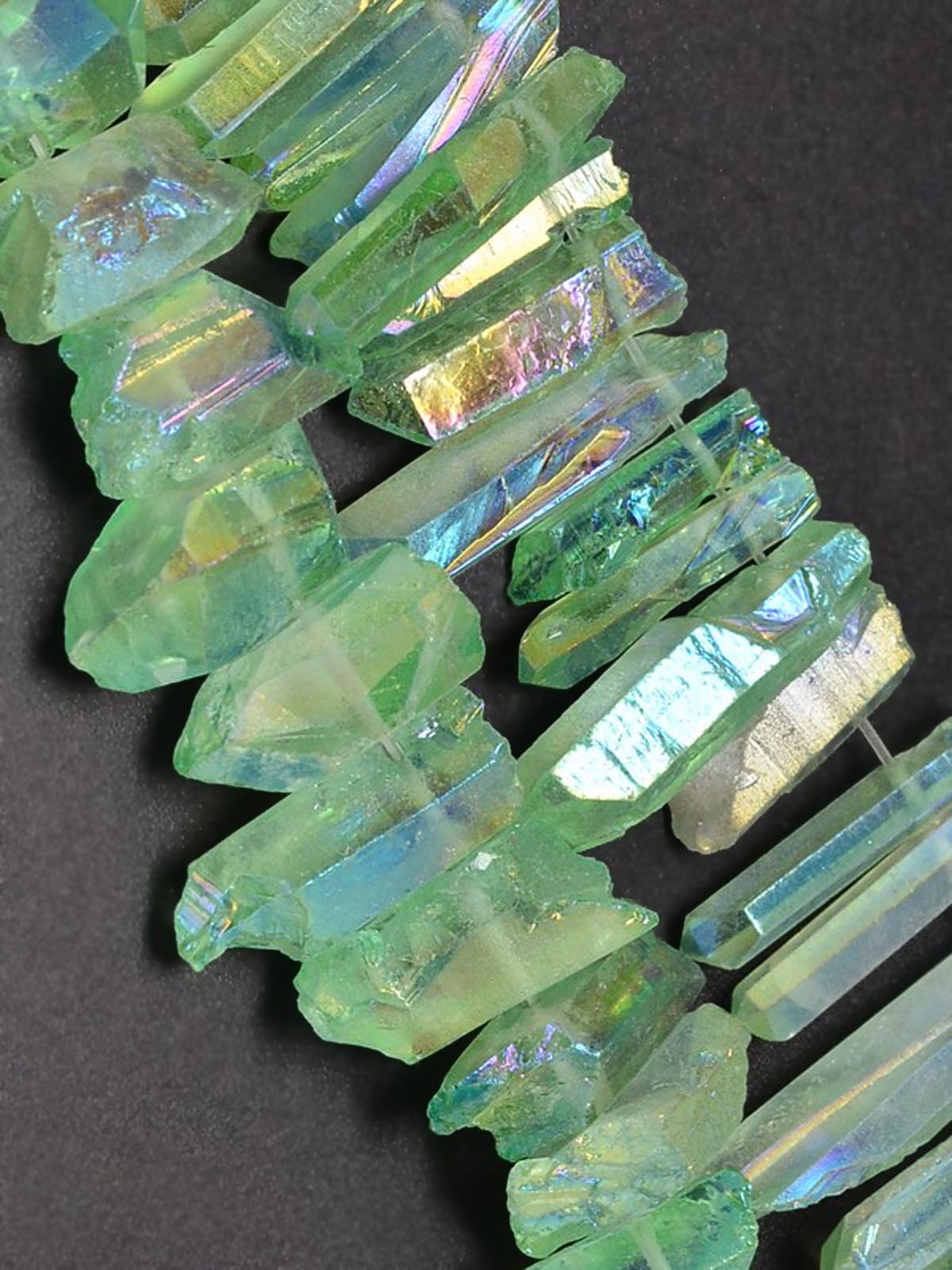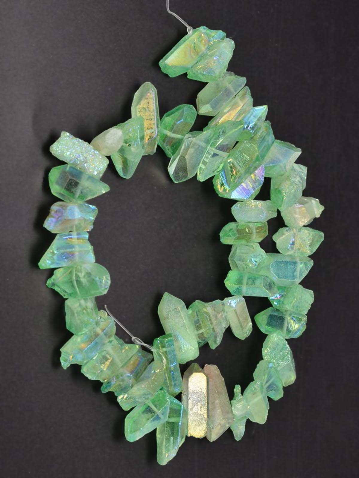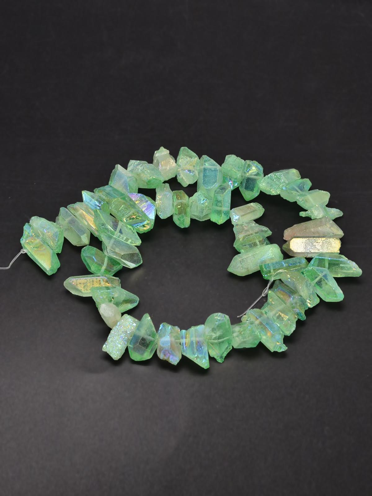 Натуральная бусина Кварц светло-зеленый 0012311 Кристалл крупный глянцевый прозрачный от 40х12 до 20х8 мм