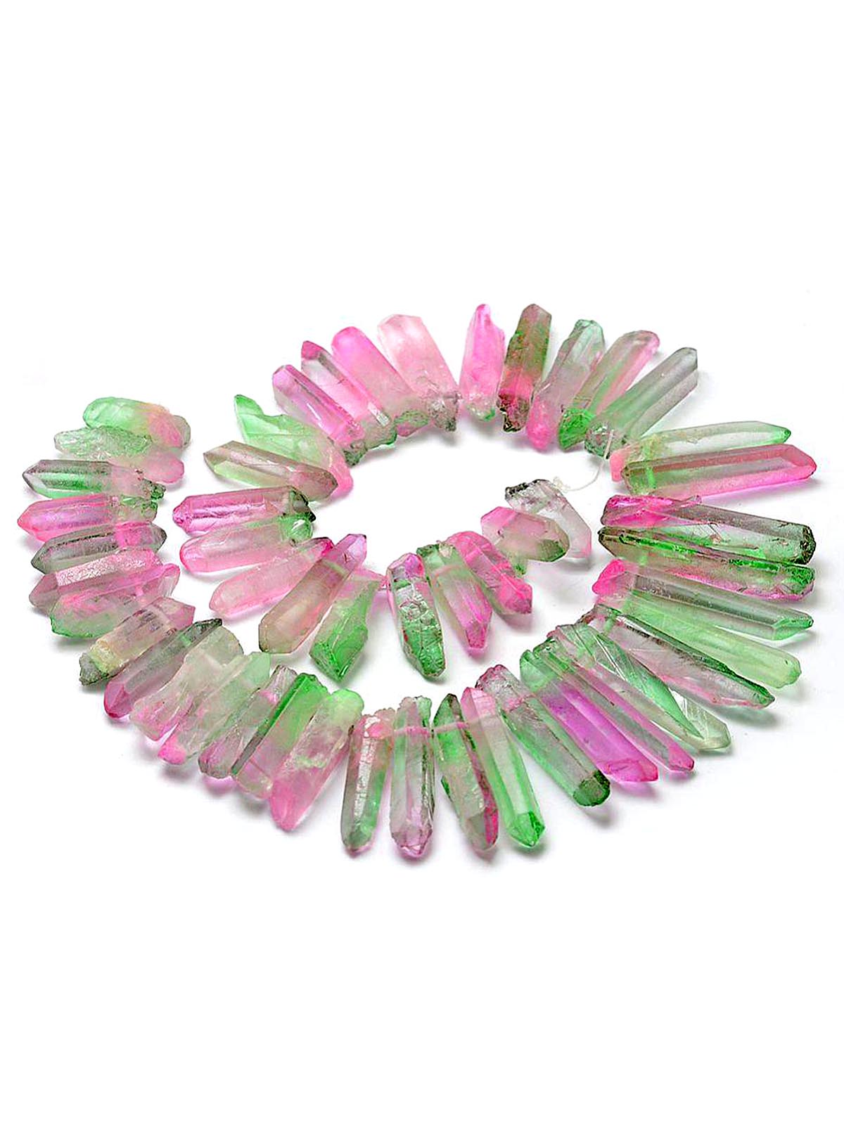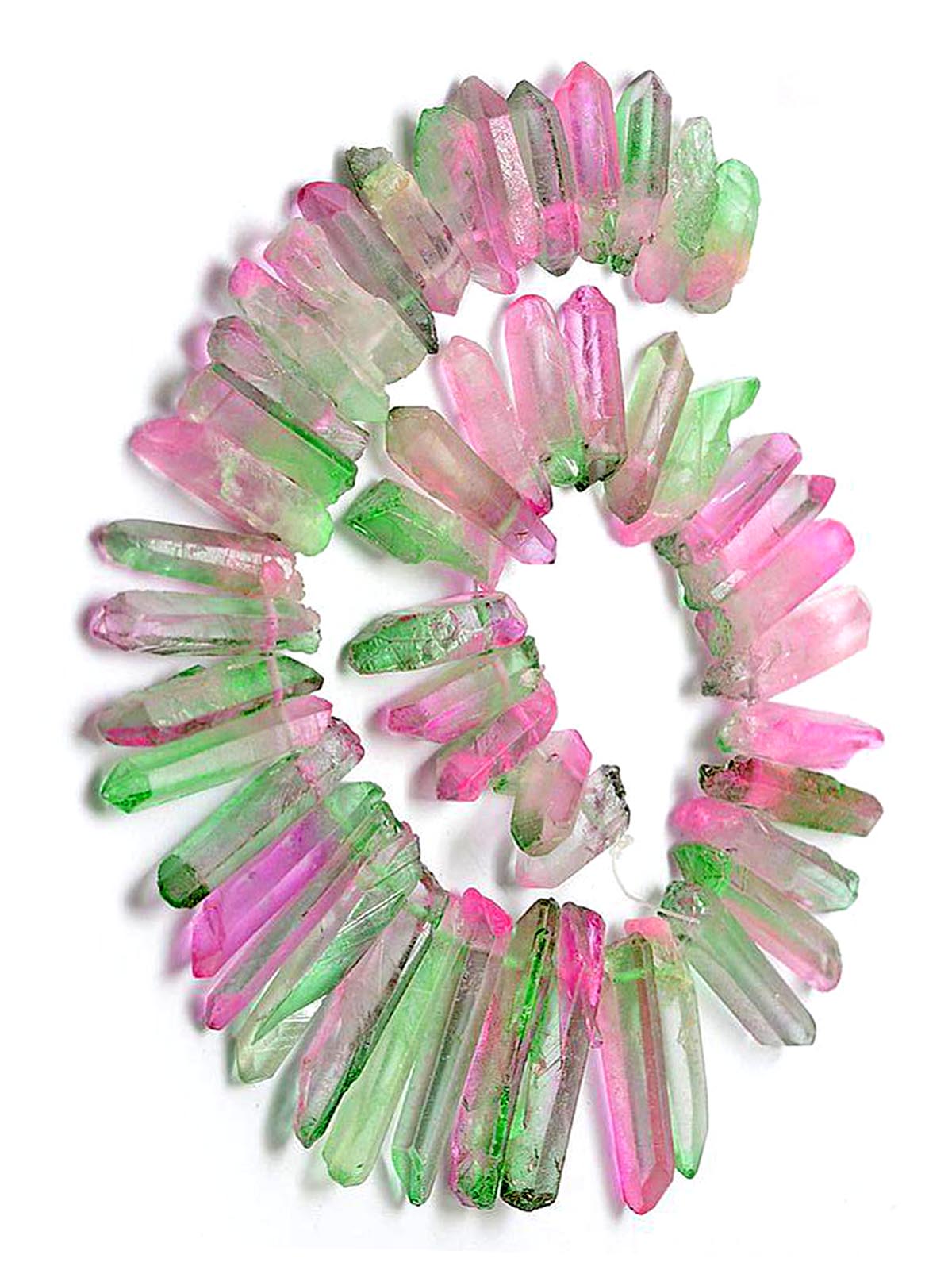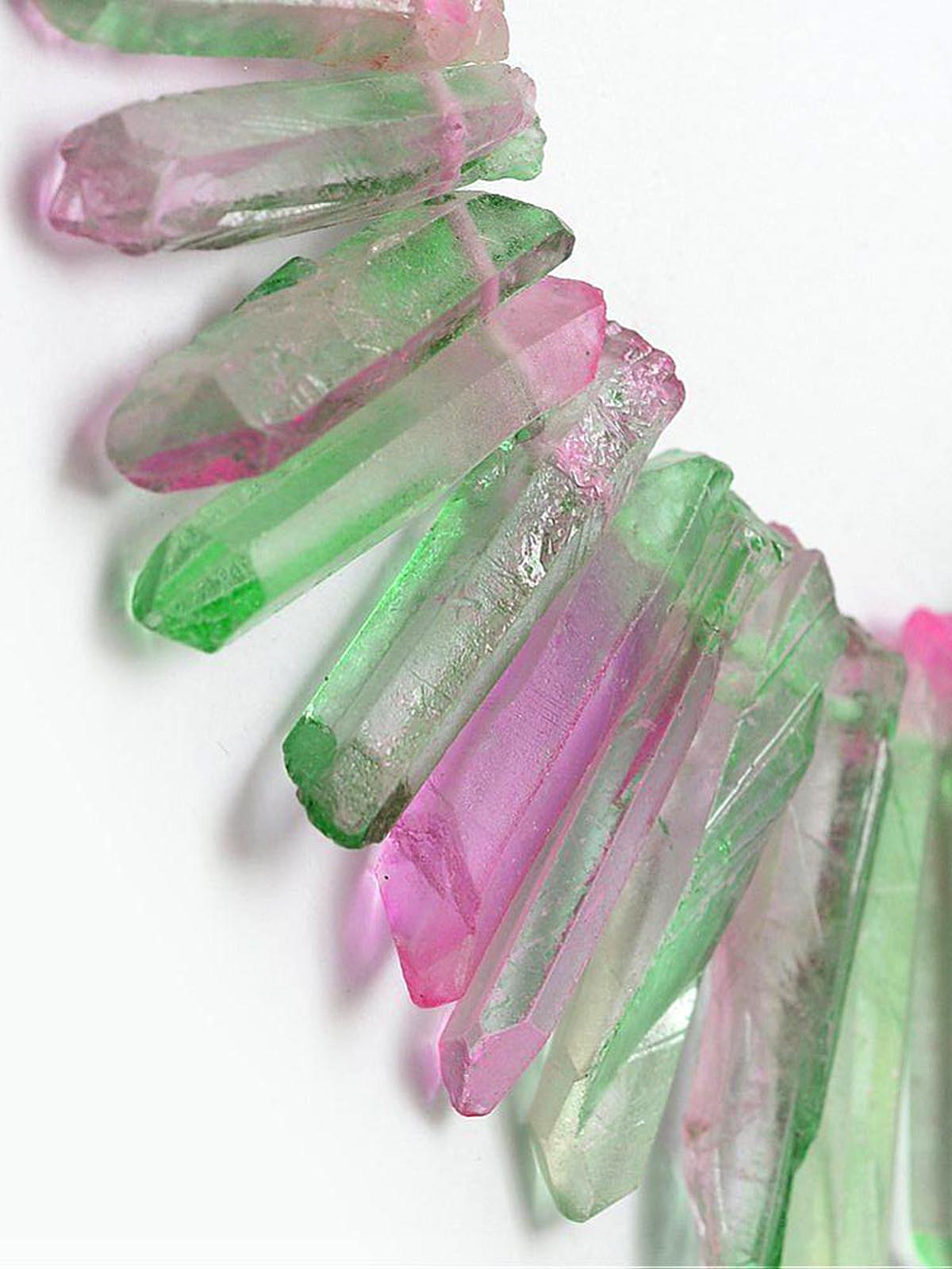 Натуральная бусина Кварц зелено-розовый 0012313 Кристалл крупный глянцевый прозрачный от 42х13 до 20х10 мм