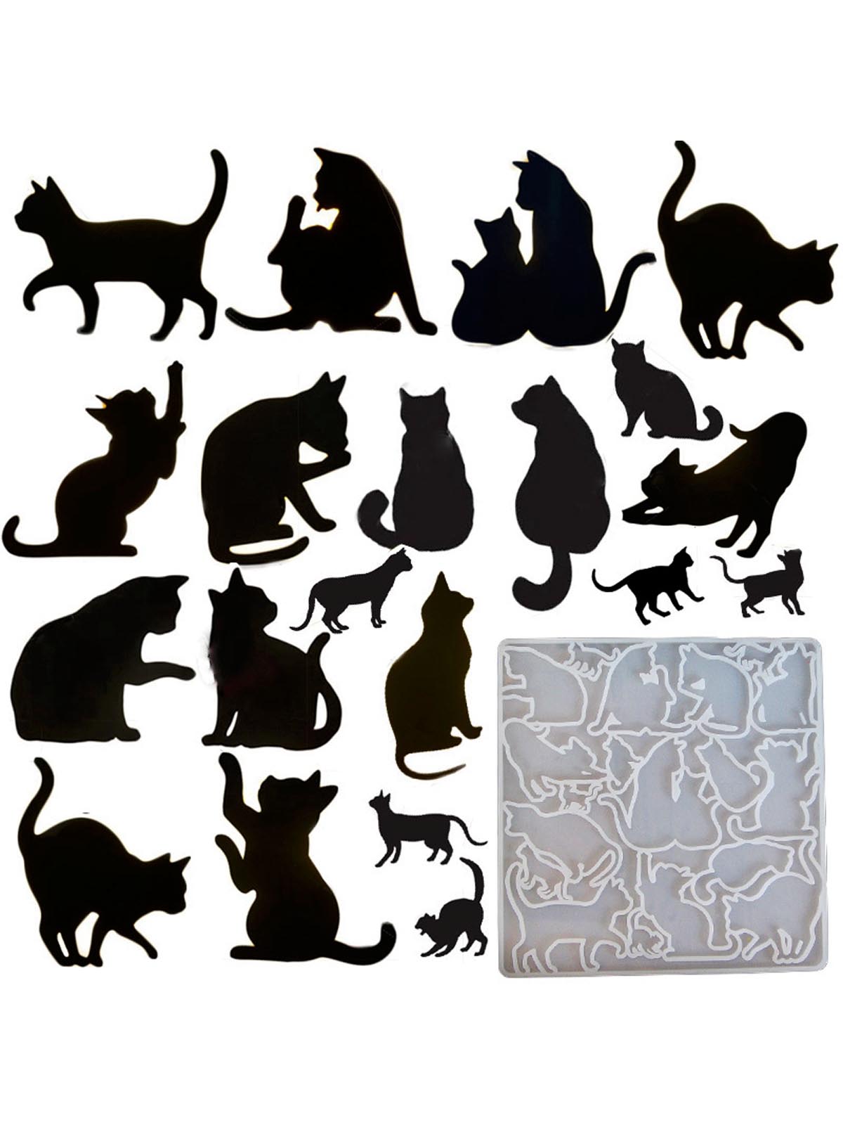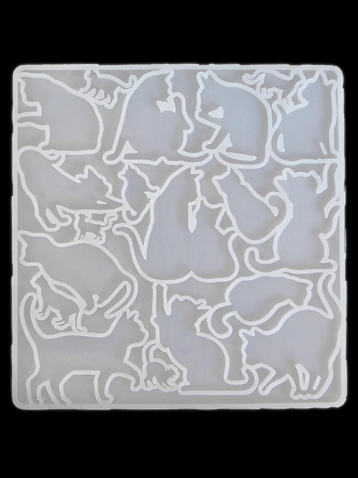 Молд силиконовый 0013111 для эпоксидной смолы Восемь Кошек с отверстиями 14х9х0.4 см