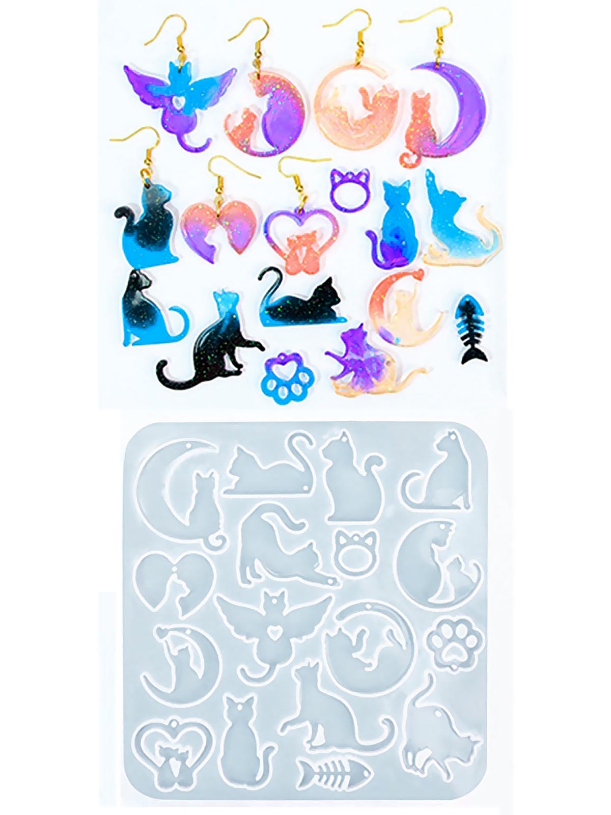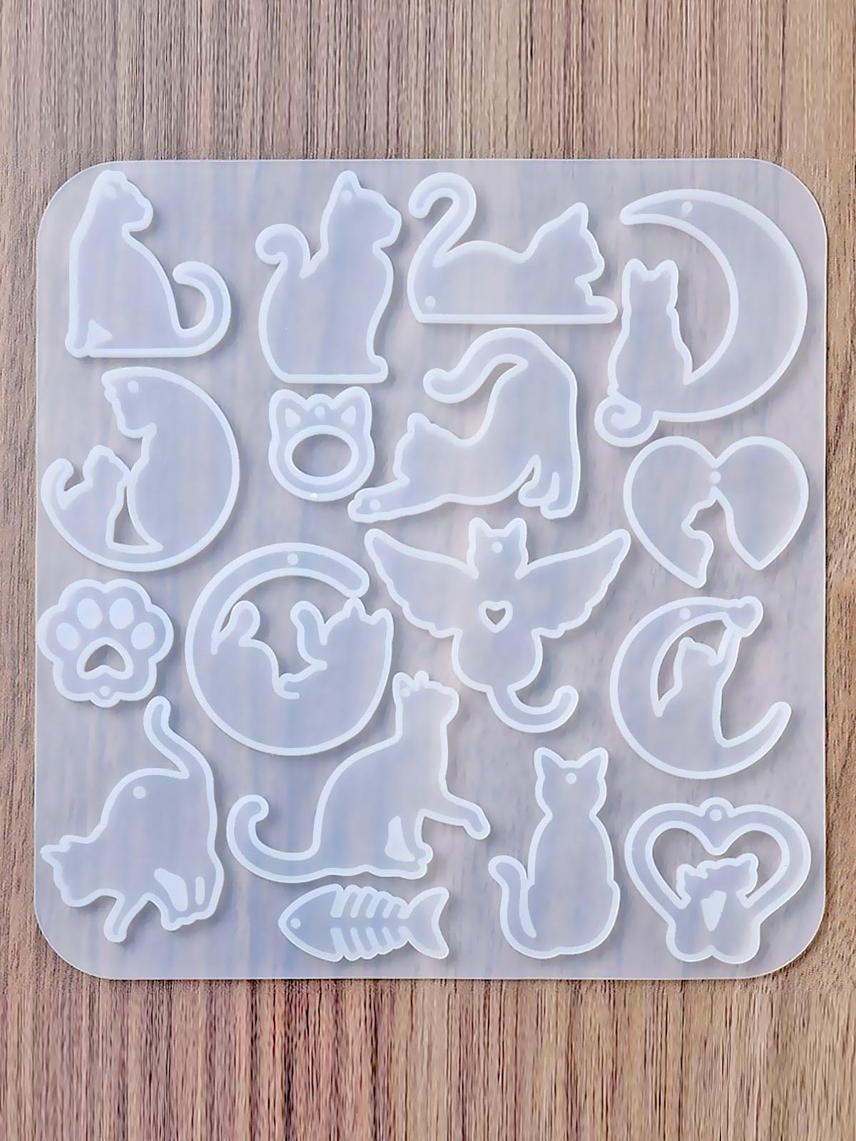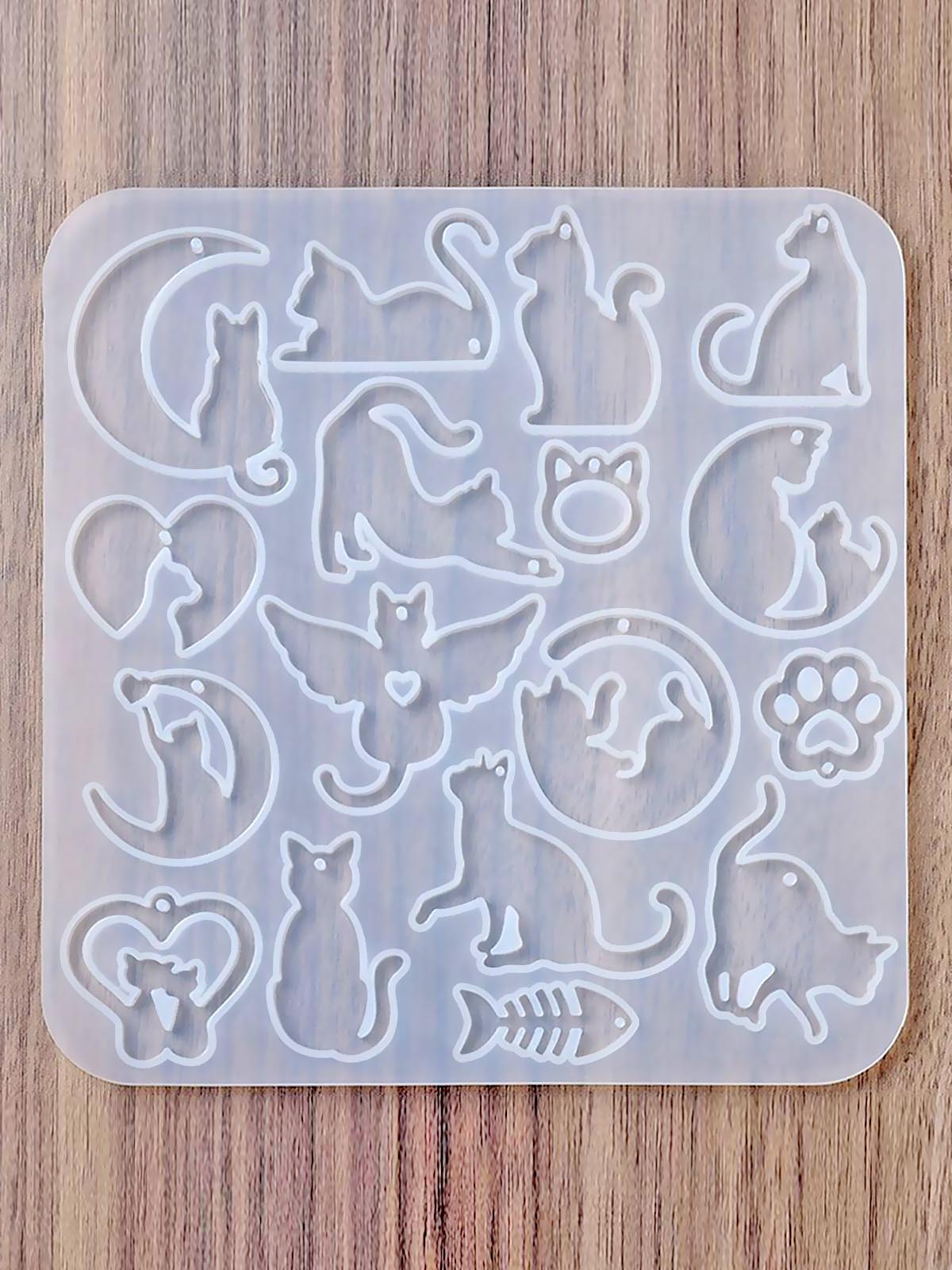 Молд силиконовый 0013131 для эпоксидной смолы Кошачий с отверстиями 14х14х0.4 см