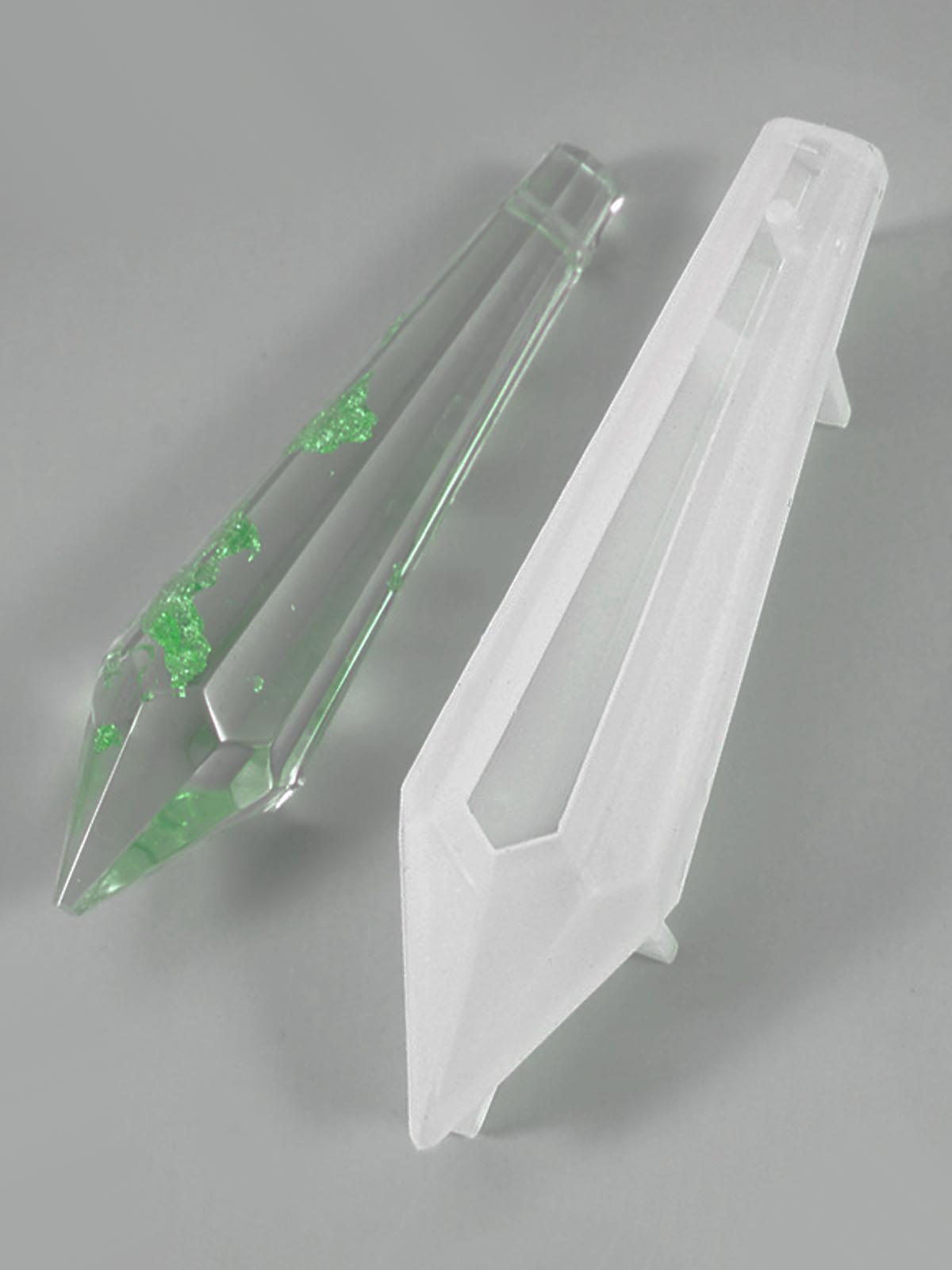 Молд силиконовый 0013164 для эпоксидной смолы Маятник Кристалл Вытянутый многогранный 8.8х2 см с отверстием