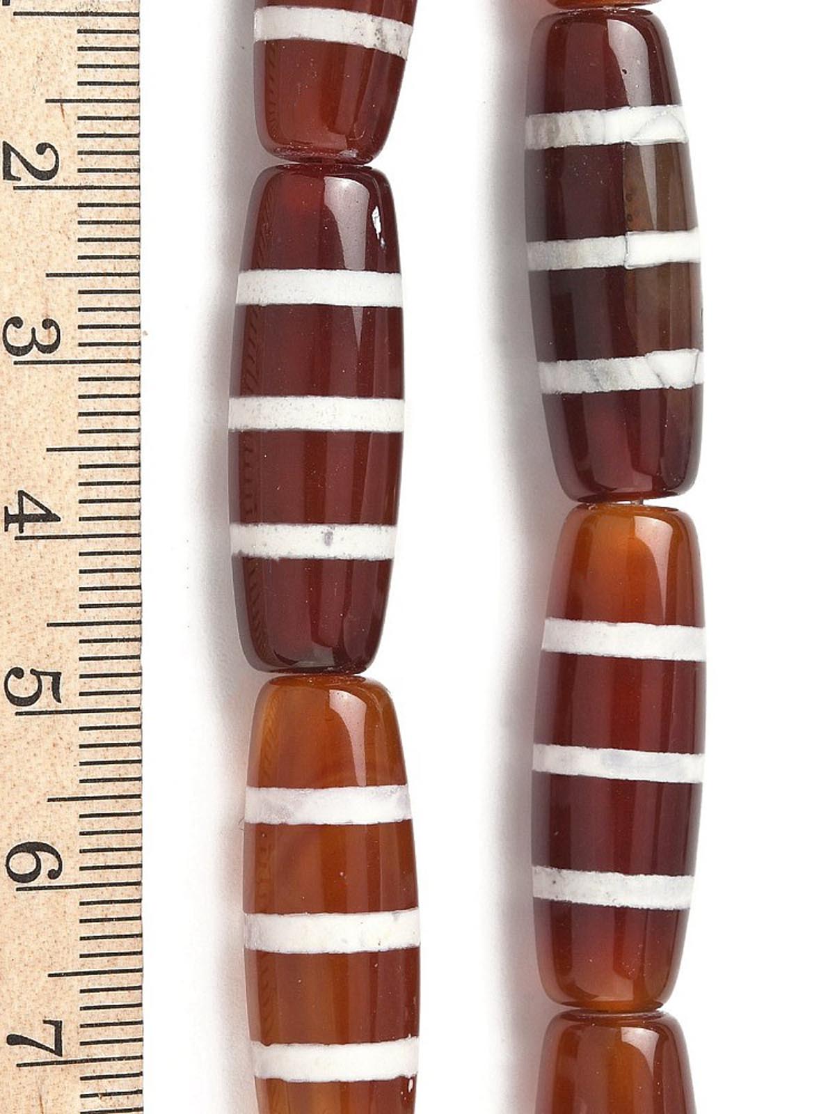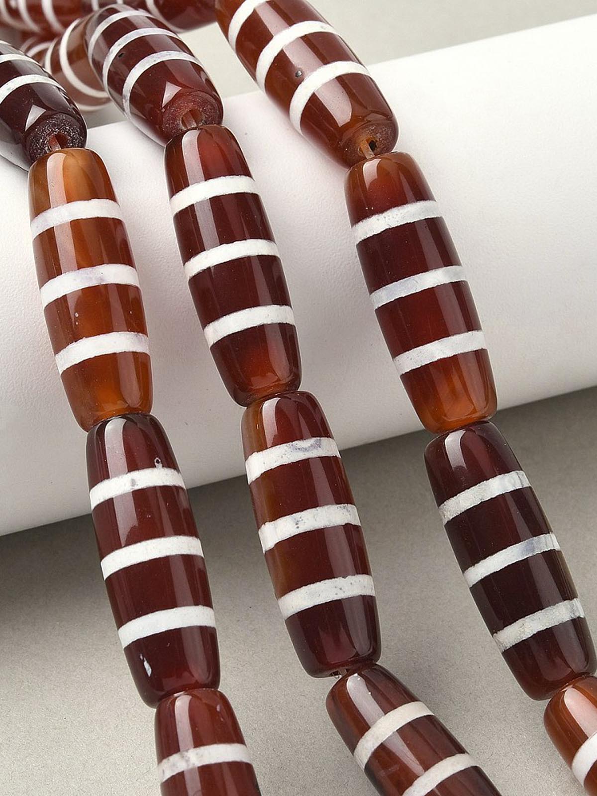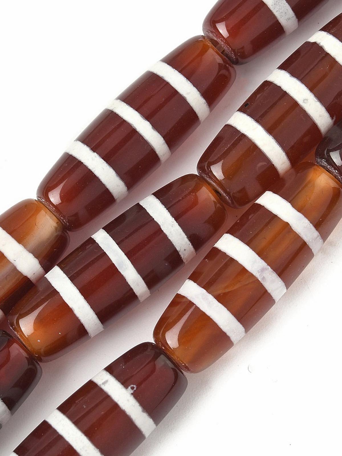 Бусина Дзи натуральный камень Агат коричневый с белым Чун Си 0013328 цилиндр 30x12 мм