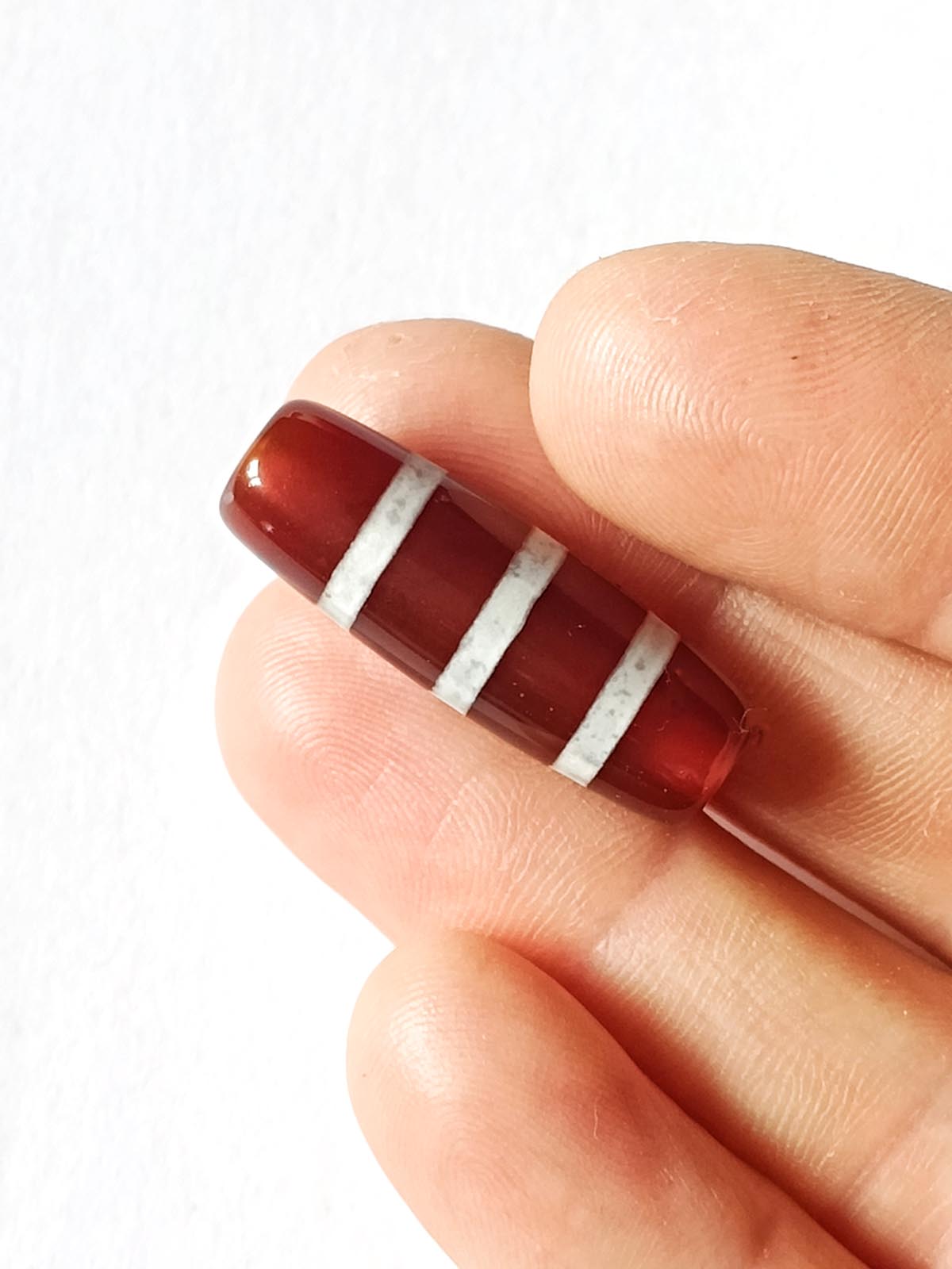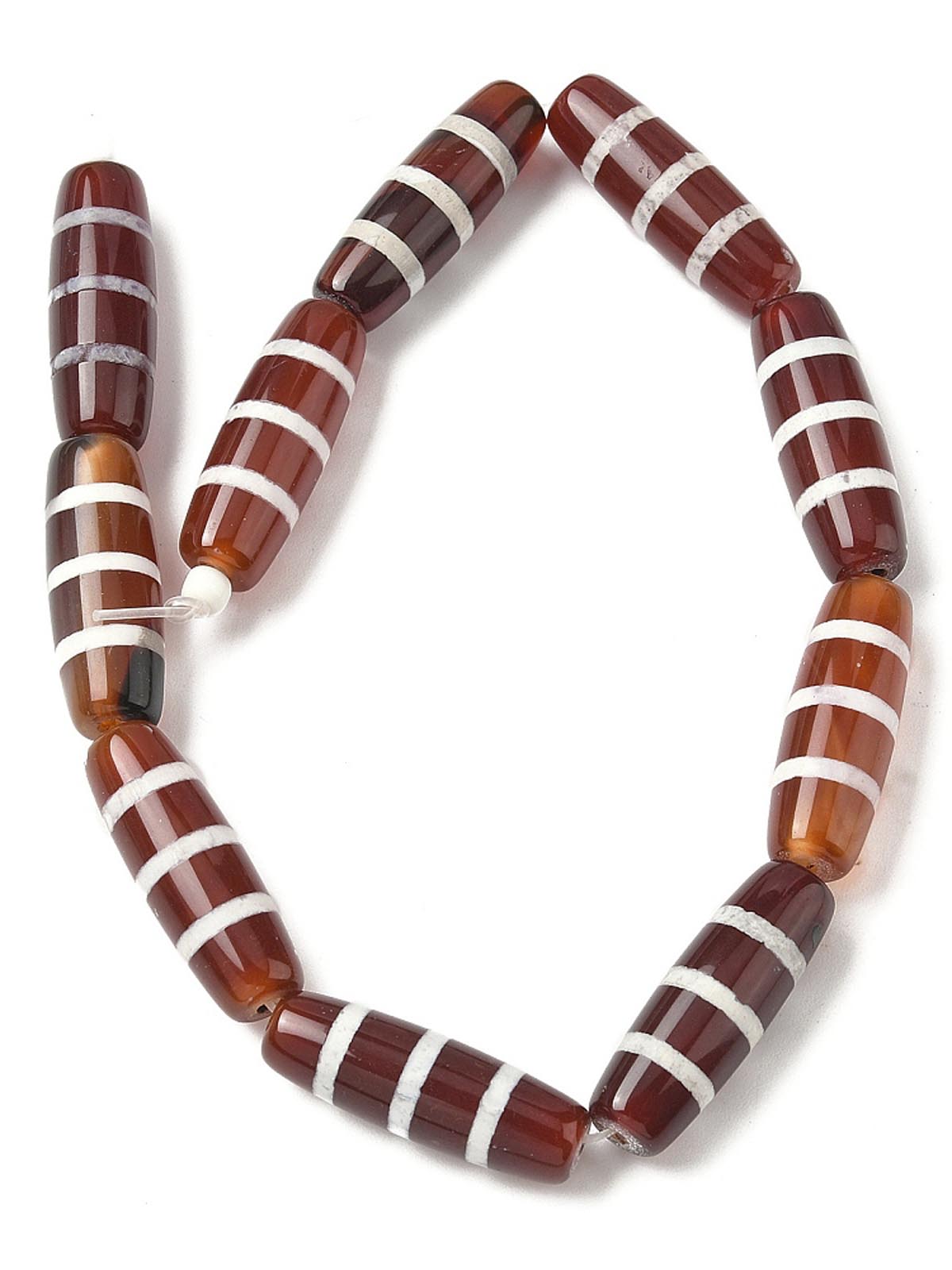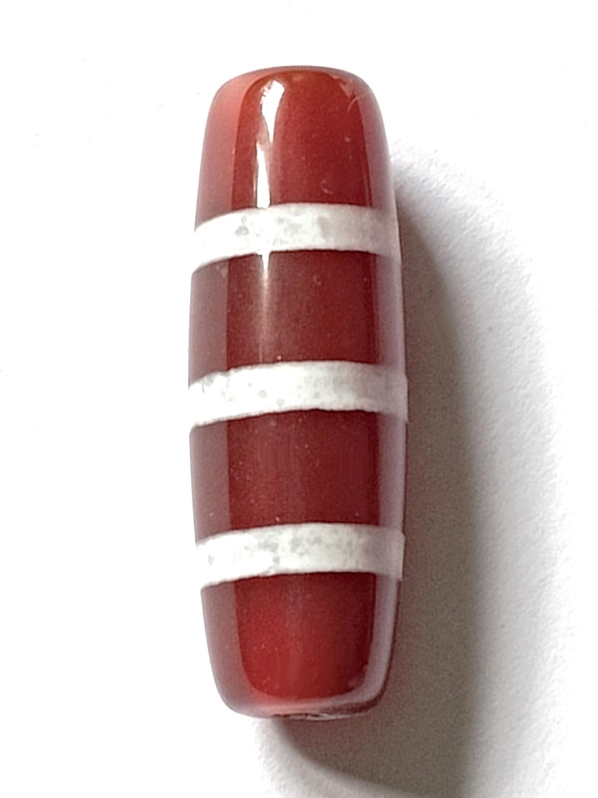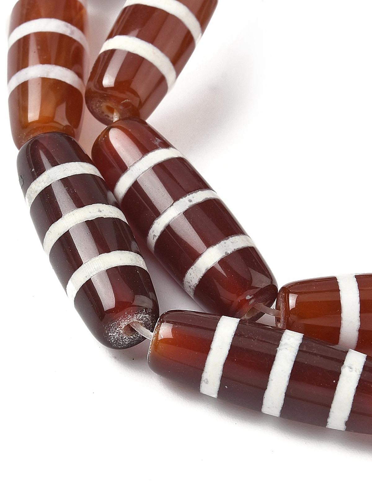 Бусина Дзи натуральный камень Агат коричневый с белым Нектарный сосуд 0010502 цилиндр 30x12 мм