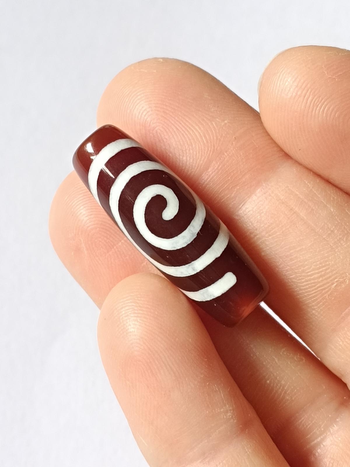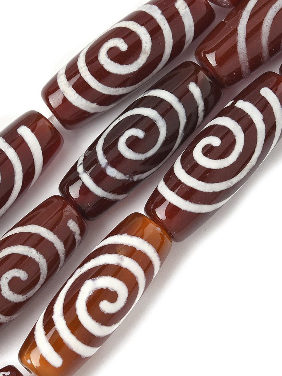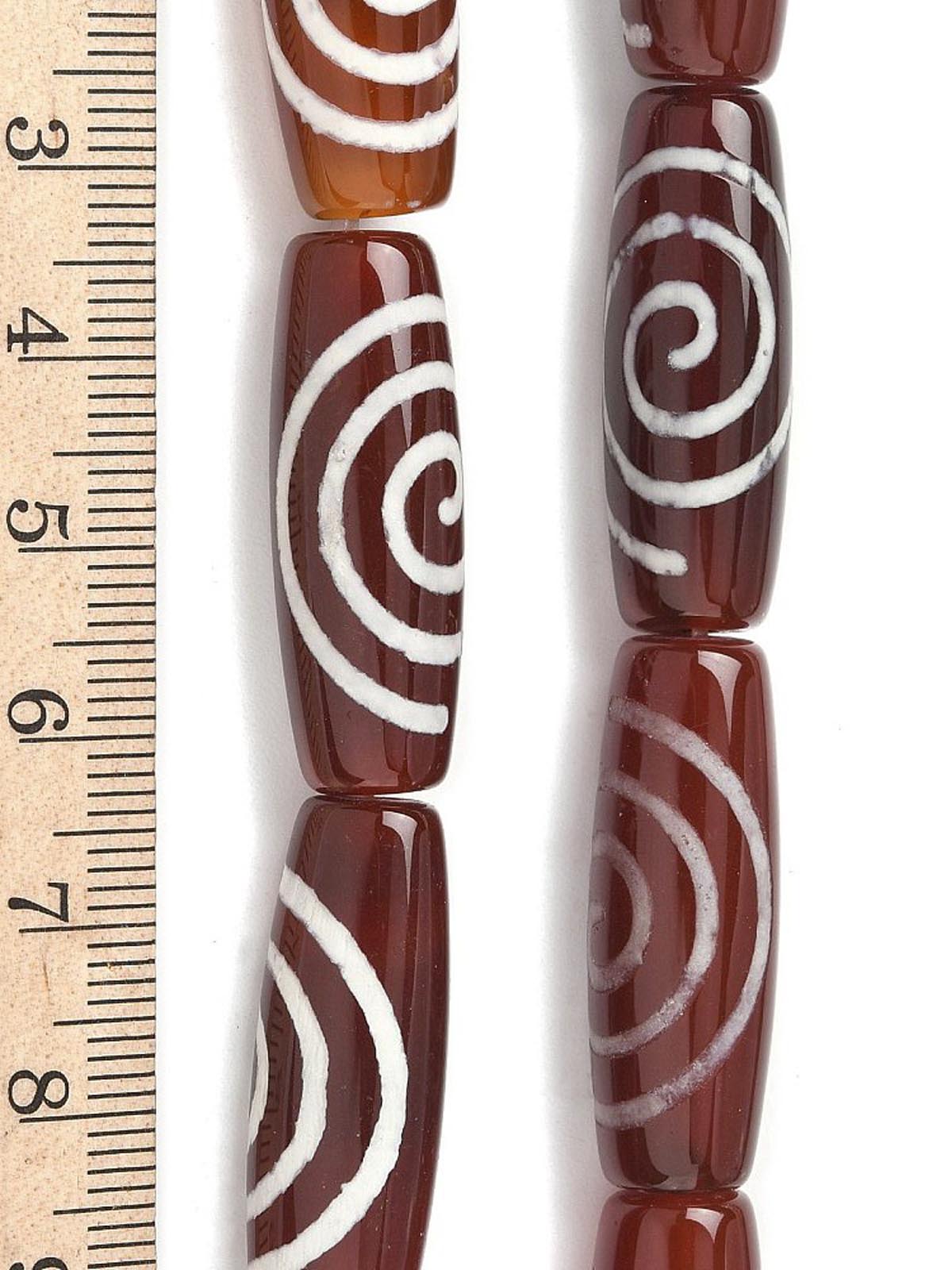 Бусина Дзи натуральный камень Агат коричневый с белым Чакра (Спираль Вселенной) 0013329 цилиндр 30x12 мм