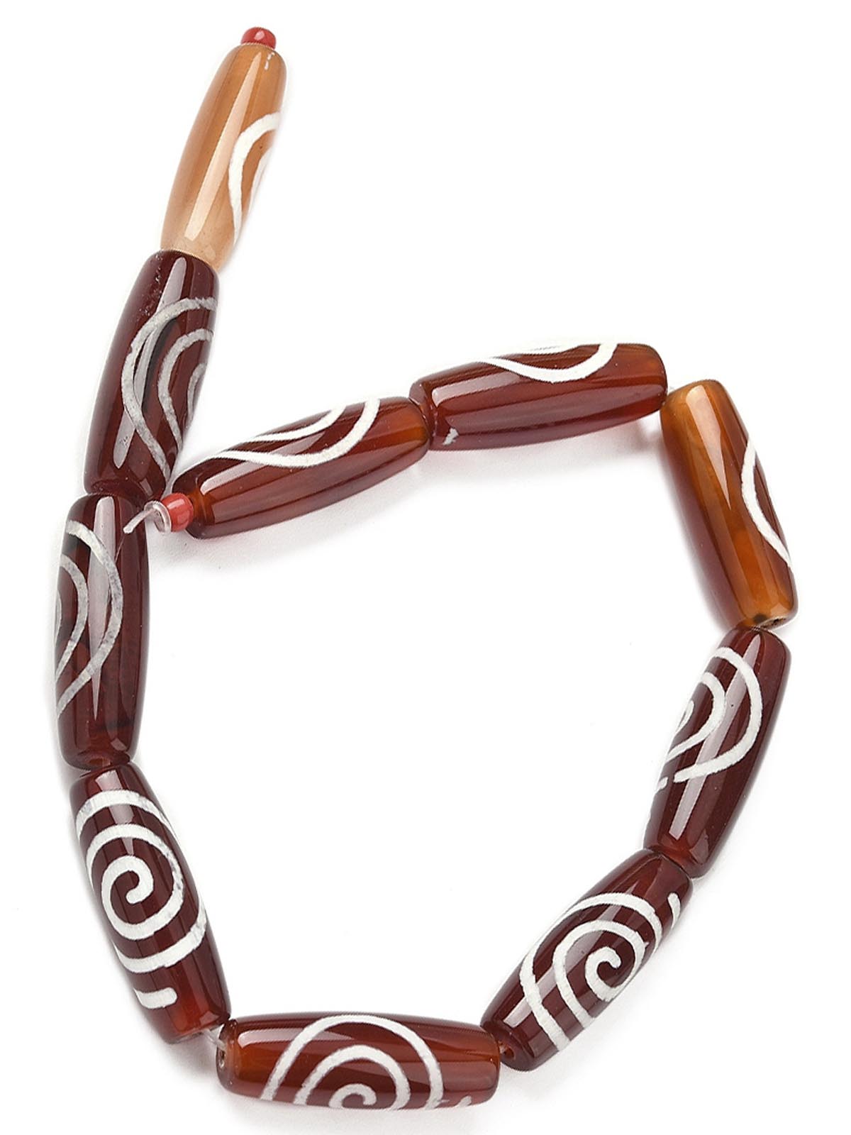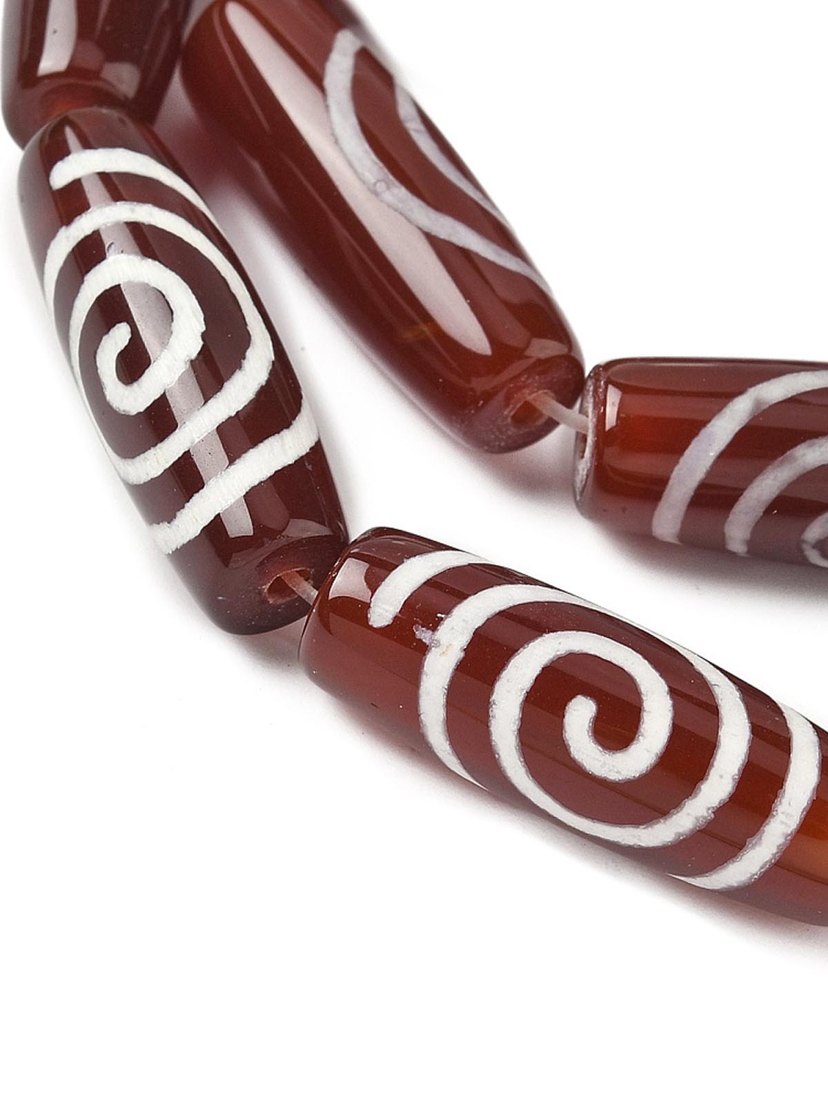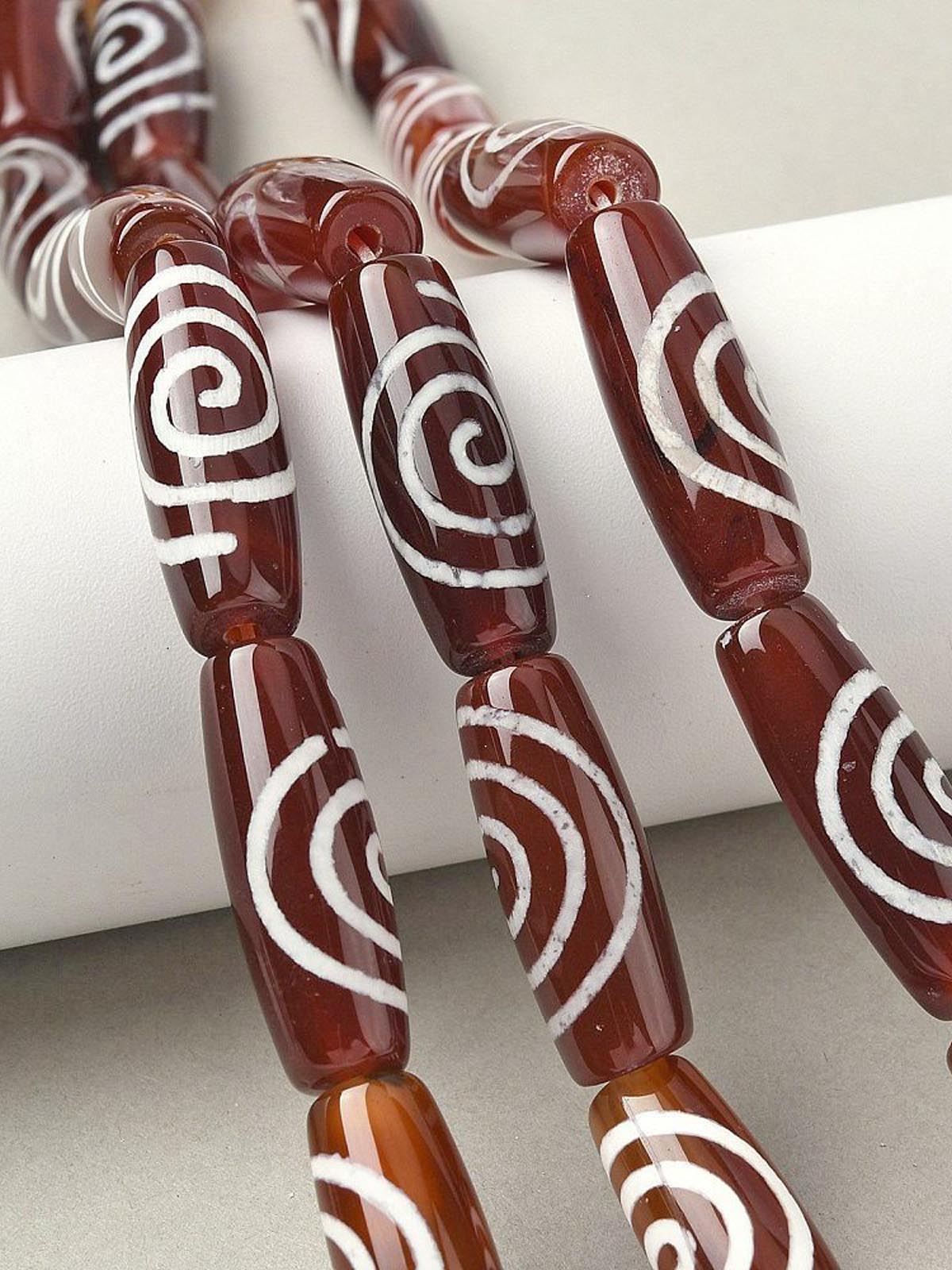 Бусина Дзи натуральный камень Агат коричневый с белым Чакра (Спираль Вселенной) 0013329 цилиндр 30x12 мм