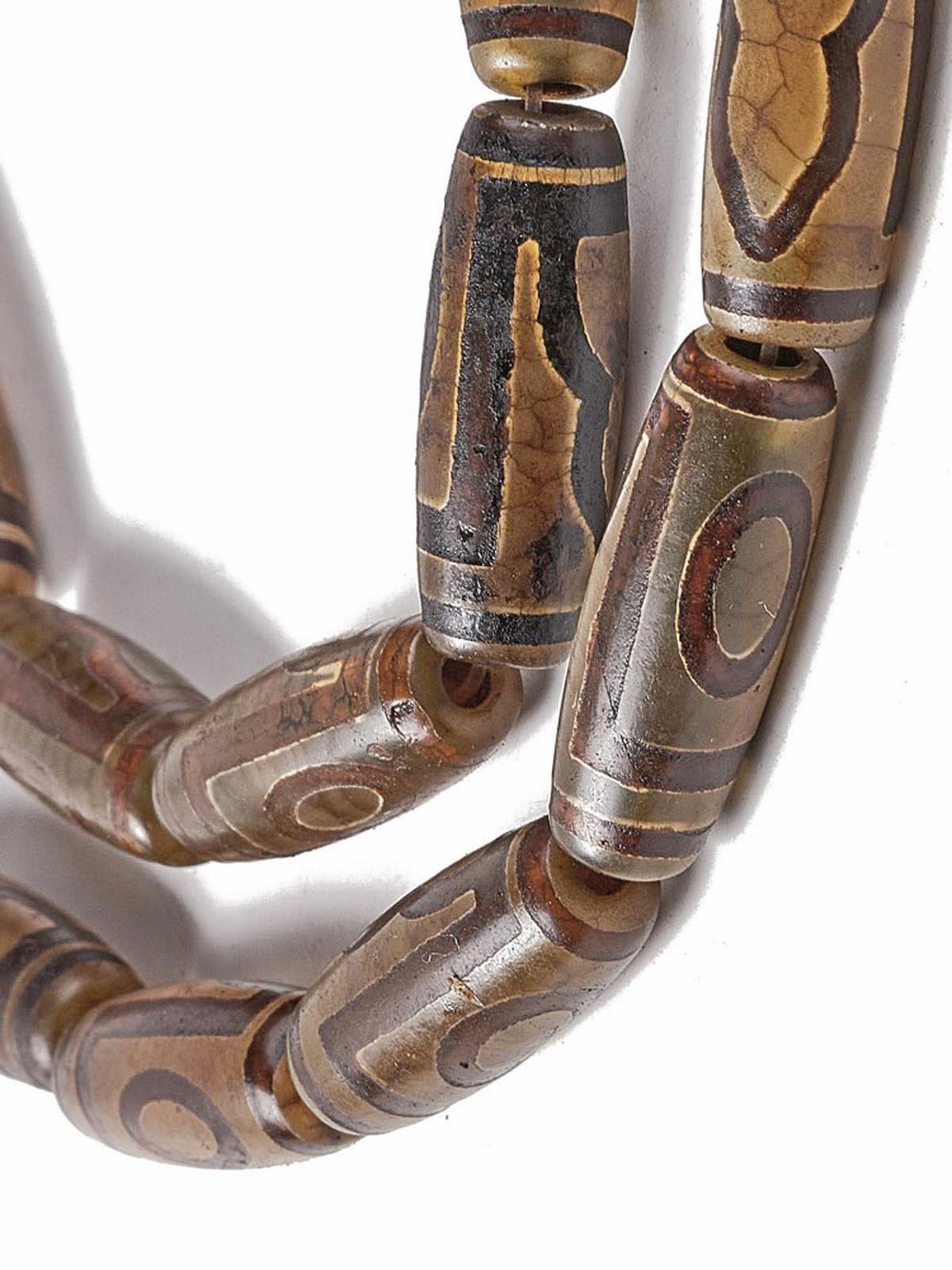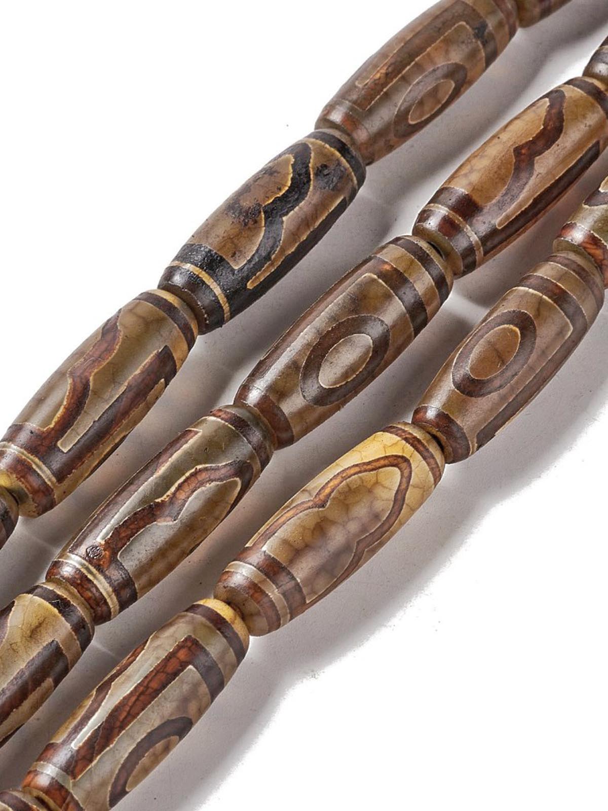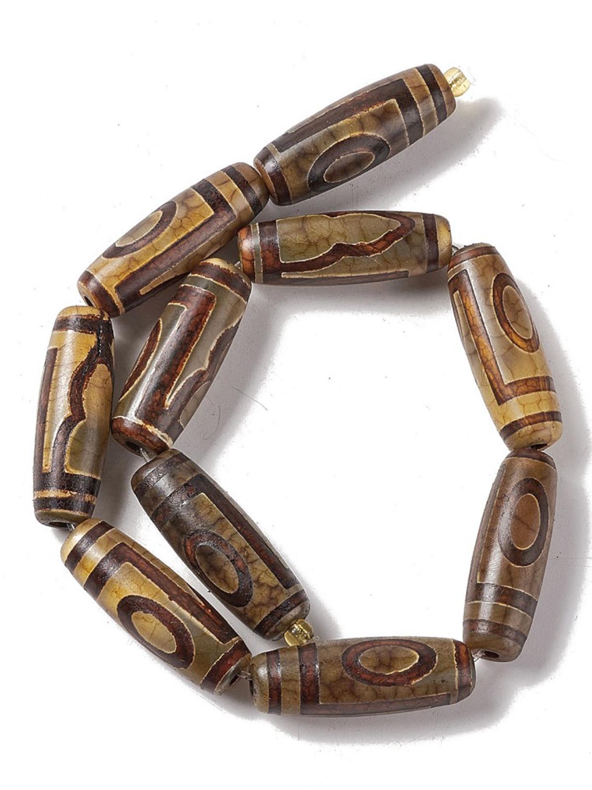 Бусина Дзи натуральный камень Агат коричневый с белым 9-глазая 0006528 цилиндр 30x12 мм