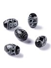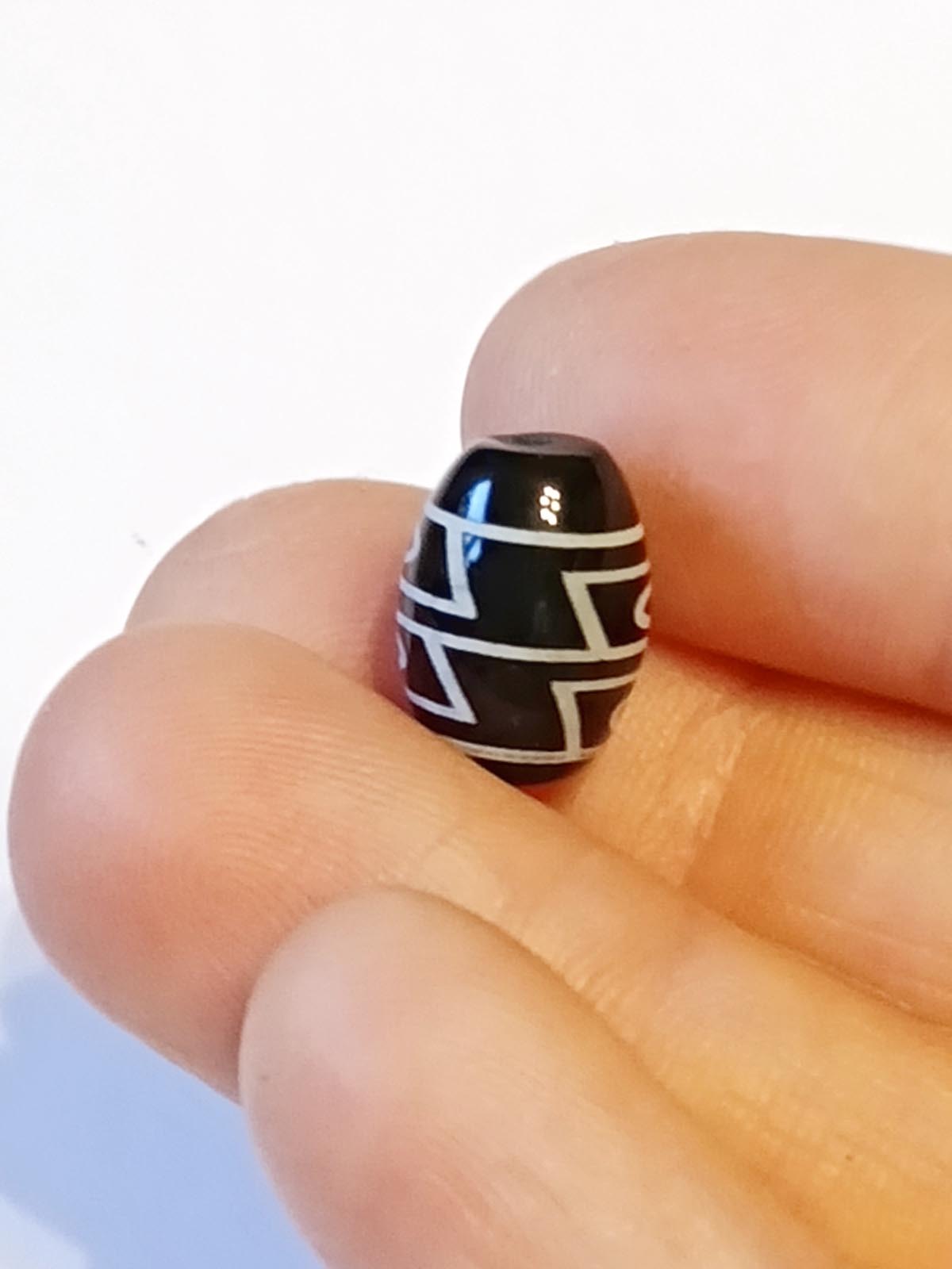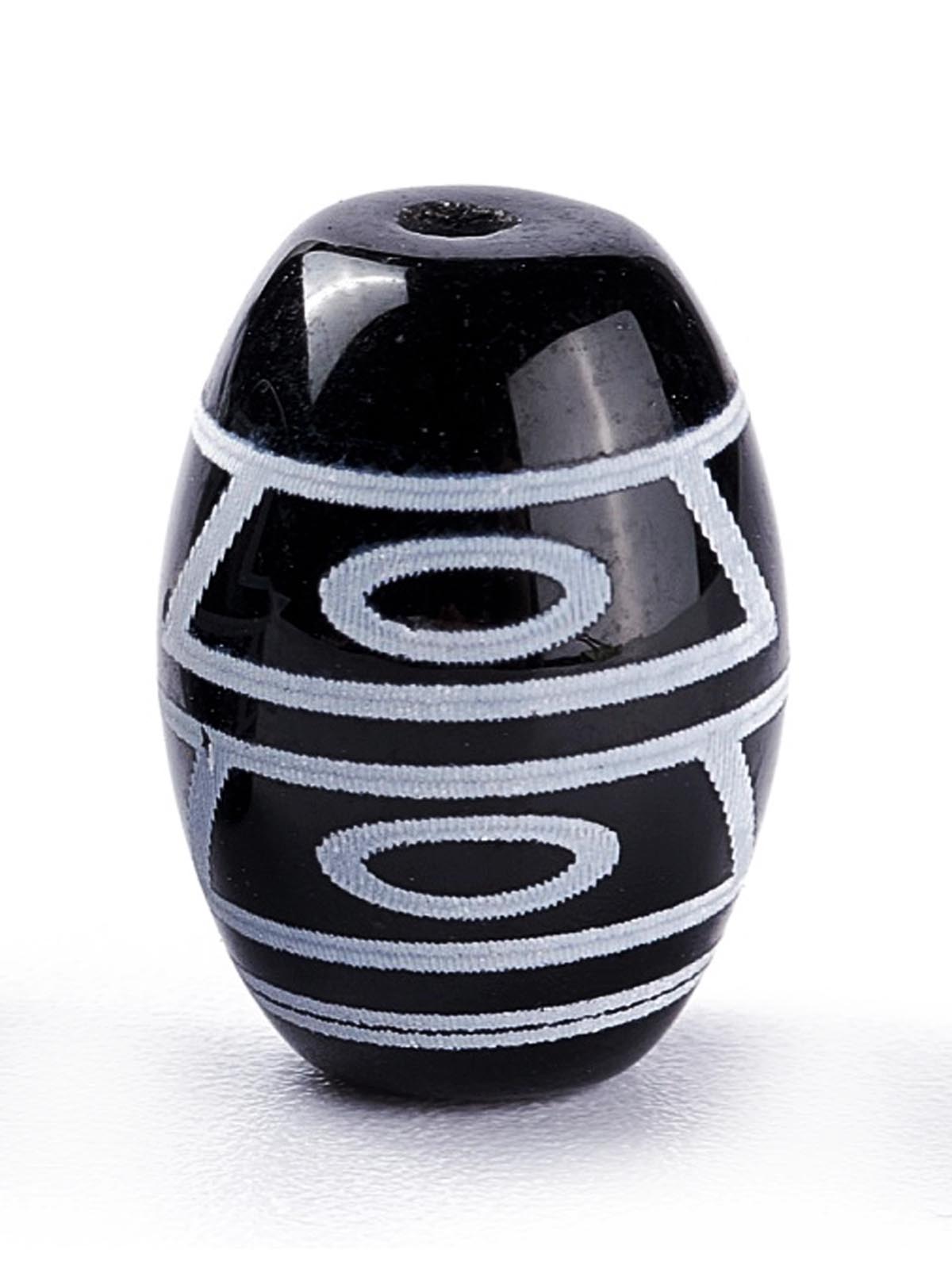 Бусина Дзи натуральный камень Агат черный с белым 4-глазая 0011284 цилиндр 30x12 мм