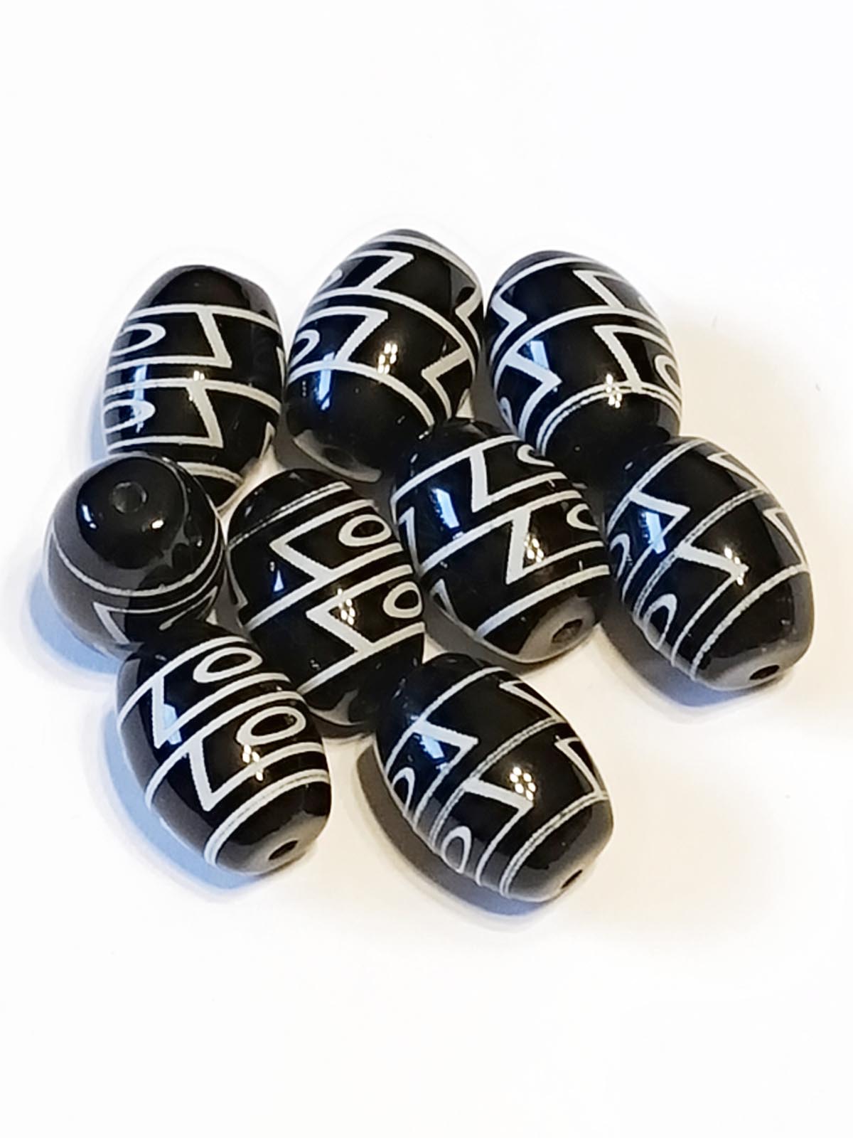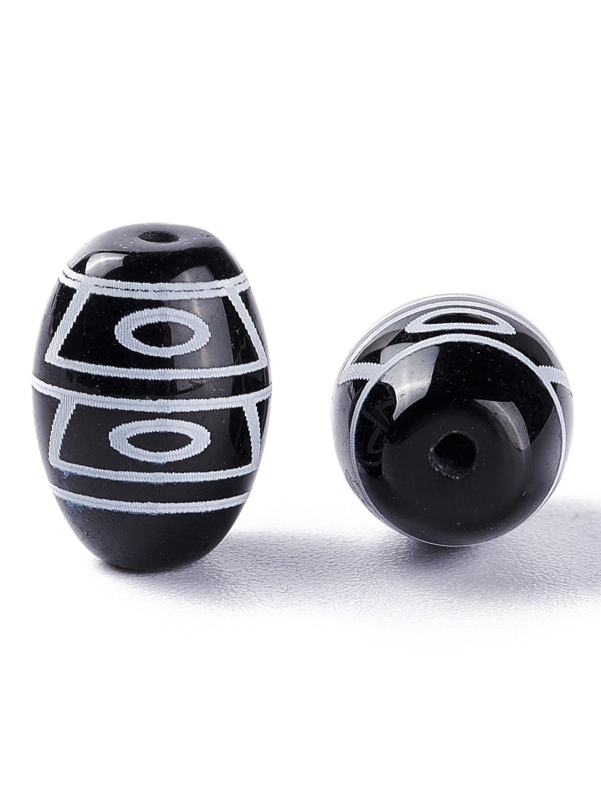 Бусина Дзи натуральный камень Агат черный с белым 4-глазая 0013335 цилиндр 14x10 мм