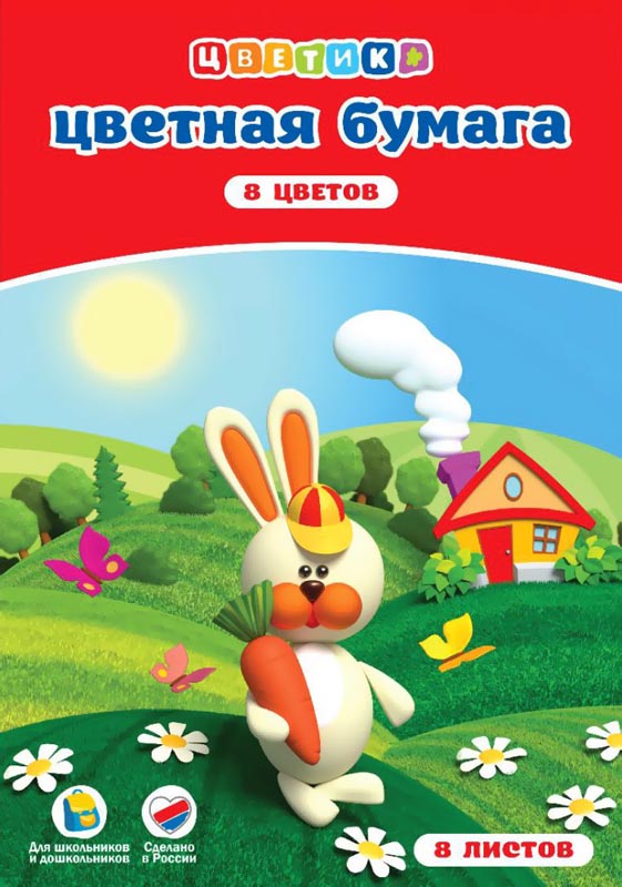 Набор цветной бумаги 1021051096 Цветик А4, плотность 65 г/м2, 8 цветов, 8 л