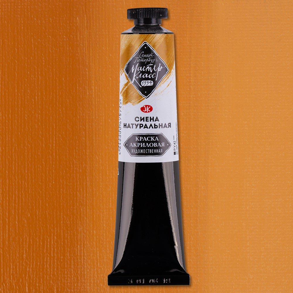 Укрывистая светостойкая краска. Состав: акриловая дисперсия, пигмент, наполнитель, вода, добавки. Художественные акриловые краски «Мастер-Класс» разработаны с учетом требований профессиональных художников. Сбалансированные рецептуры объединяют в себе традиции производства и инновационные разработки. В палитре представлено широкое разнообразие пигментов, в том числе ценные для живописи кадмии и кобальты. Благодаря высокой концентрации пигмента и оптимальному содержанию наполнителей краски сохраняют интенсивность и глубину цвета после высыхания. 94% цветов в ассортименте имеют высочайший показатель светостойкости ***. 60% красок серии составляют монопигментные цвета, которые позволяют получить множество чистых оттенков в смесях. Профессиональный акрил «Мастер-Класс» обладает пастозной консистенцией, позволяющей создавать фактурные мазки. Для творческой свободы художника время высыхания акрила увеличено до 3 часов. После высыхания акрил «Мастер-Класс» приобретает благородный сатиновый блеск.