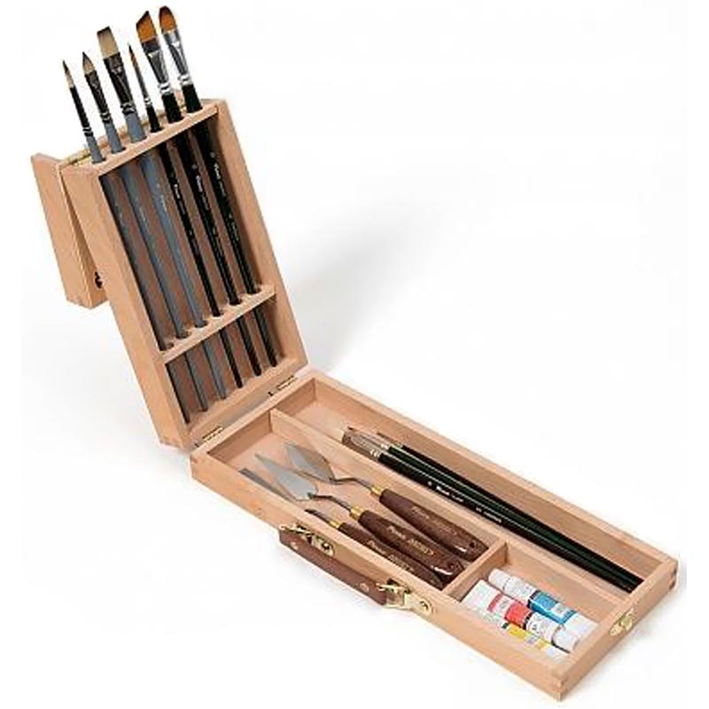 Ящик художника Сонет 1601269-1 с ячейками и пеналом для кистей и красок, 3-х секционный, бук, 32х14х55 см