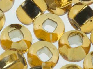 Чешский бисер Preciosa 17020 Прозрачный светло-золотой с серебряной линией (10/0) 2.3 мм, 5 г.
