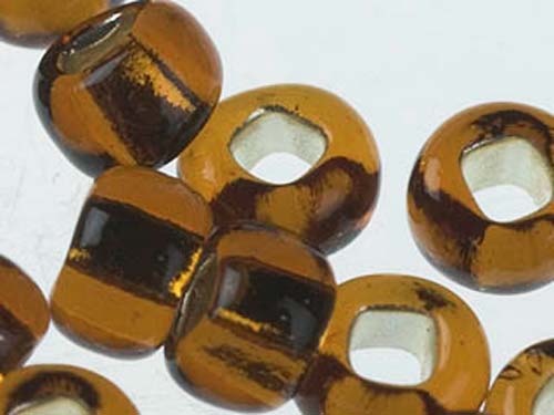 Чешский бисер Preciosa 17070 Прозрачный темно-янтарный с серебряной линией (10/0) 2.3 мм, 5 г.