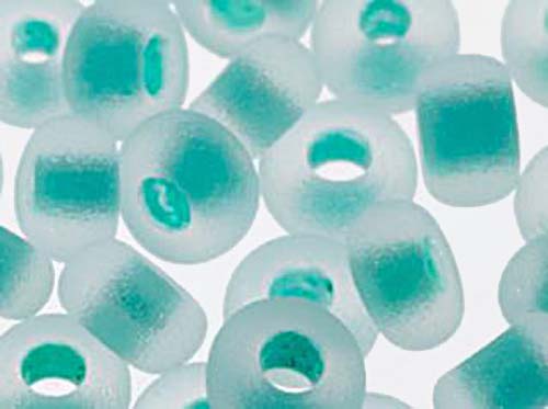 Чешский бисер Preciosa 38358 Кристально-прозрачный с бирюзово-зеленой линией, матовый (10/0) 2.3 мм, 5 г.