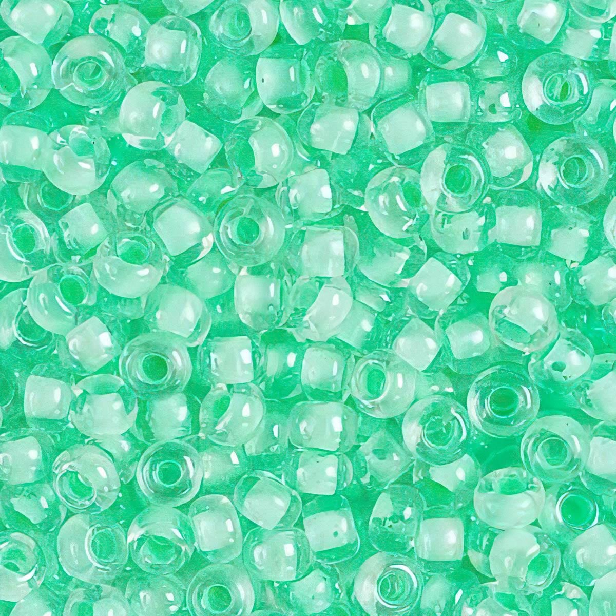 Чешский бисер Preciosa 38652 прозрачный с салатным центром (10/0) 2.3 мм, 5 г.