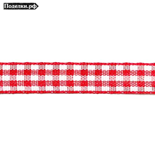 Лента полиэстер 411456 шотландка красная 9 мм