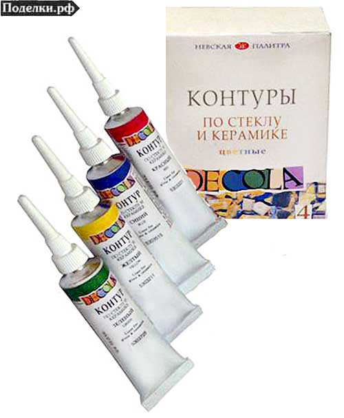 В наборе 4 контура по ткани по 18 мл (желтый, зеленый, красный, синий)