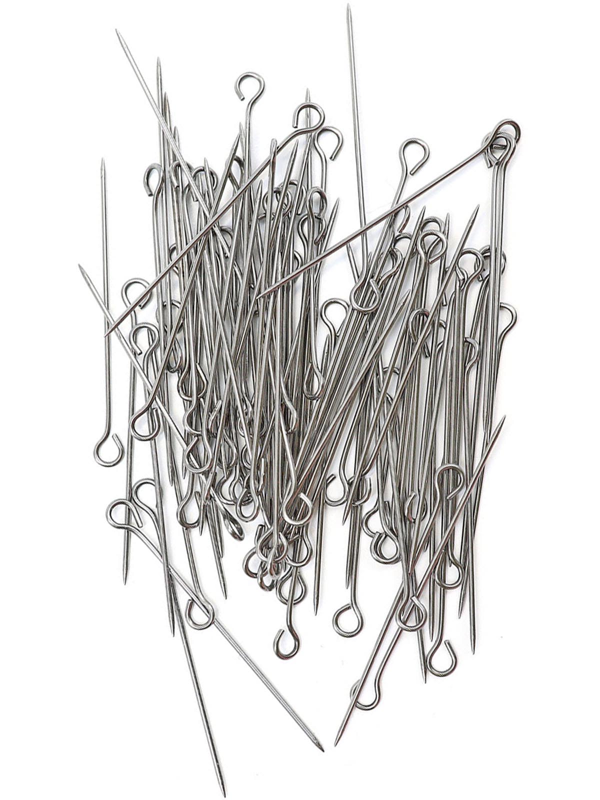 Булавки с головкой-петлей многофункциональны и всегда должны быть под рукой. Головка-петелька достаточно заметна на изделии, удобна в работе, и благодаря плоской форме не будет мешать при отпаривании деталей.