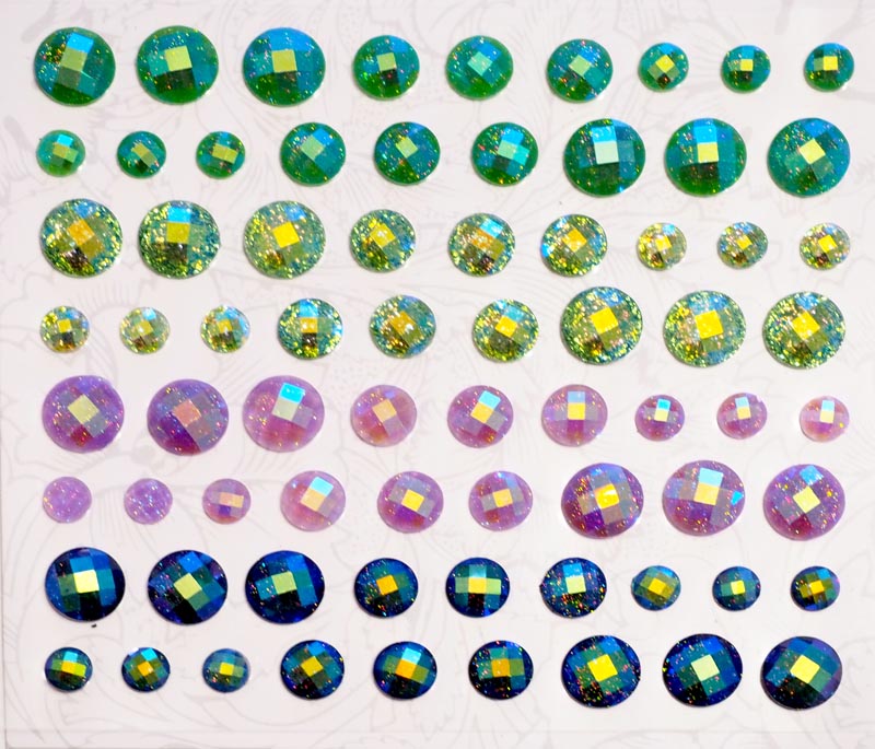 Стразы на клейкой основе 4 цвета от 5 до 10 мм, 72 шт