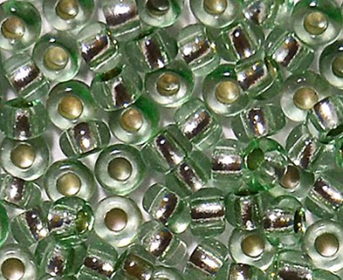 Чешский бисер Preciosa 78162 Прозрачный дымчатый светло-зеленый, золь-гель (solgel) с серебряной линией (10/0) 2.3 мм, 5 г.