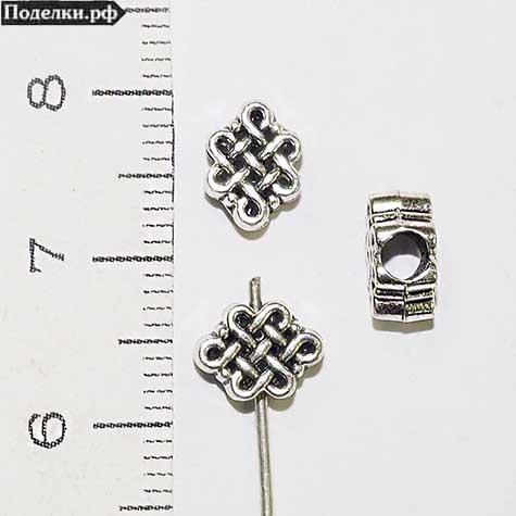 Металлическая бусина Узел счастья 0008079 серебряный цвет 7x6x4 мм