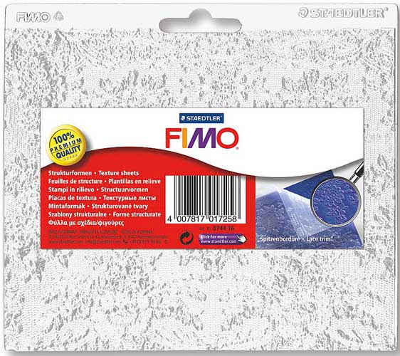 Текстурные листы специально разработаны для использования со всеми видами глин FIMO, обеспечивая получение четкого рисунка. Текстурные листы также пригодны для создания узоров на бумаге с помощью мелков, масляной пастели и карандашей. Это гибкое и прочное приспособление профессионального качества c длительным сроком службы. Для упрощения работы следует нанести на текстурный лист воду из распылителя (только для запекаемых глин), присыпку или крахмал. Текстурный лист запекать нельзя!
