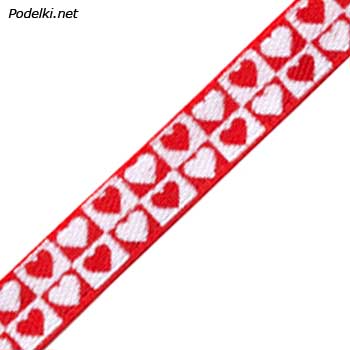 Атласная лента ALP061-H8-065 белые и красные сердечки 6 мм