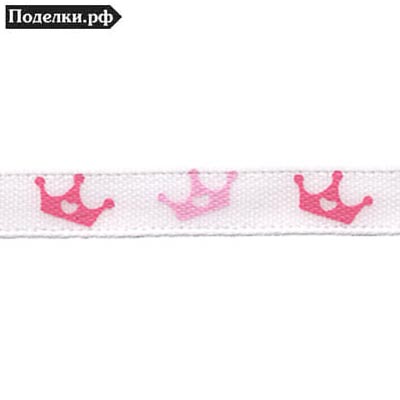 Атласная лента ALP062-K1-001 белая с розовыми коронами 6 мм