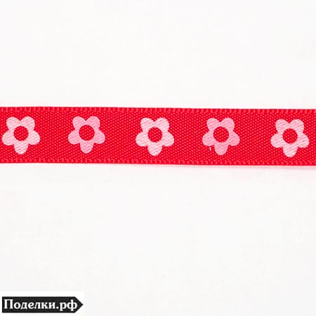 Атласная лента ALP102-F19-026 красная с цветочками 10 мм